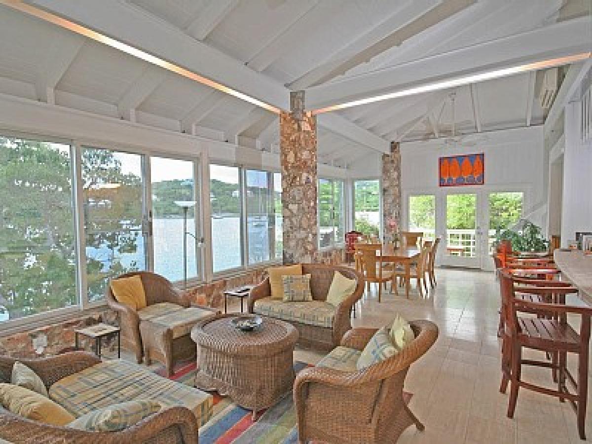 Beach Walk is a magical place most noted for quiet privacy right at the water's edge. Inside and outside of the 2,000 square foot villa, the lapping surf reminds you to take a look into the emerald waters just a few steps away. Snorkel and swim without ever leaving your villa. Colorful fish and coral reefs line this waterfront property. You can lay in a hammock, listen to the gentle surf, and sink into deep relaxation, or even come in from a delightful snorkel and retire to the hot tub, all without ever getting into a car. Inside Beach Walk you'll find the great room surrounded by glass to take in full views of the crystal clear water and Caribbean Sea beyond. Furnished in island style, Beach Walk is pleasantly decorated. The kitchen is well equipped including a pass through bar into the Great Room, all with full views of the water. Of course, the water is so close that even the slightest surf can be heard sending the senses into that relaxed state that only water sounds can provide. Both bedrooms and Great Room are air conditioned, or if you prefer, open all the large surround windows to enjoy the clean ocean breeze. Beach Walk is only five minutes away from beaches, shops, and dining. Just far enough to feel the privacy you find driving to the end of Chocolate Hole Bay and down a long winding driveway to the villa and the water. Beach Walk offers island living at its best.
