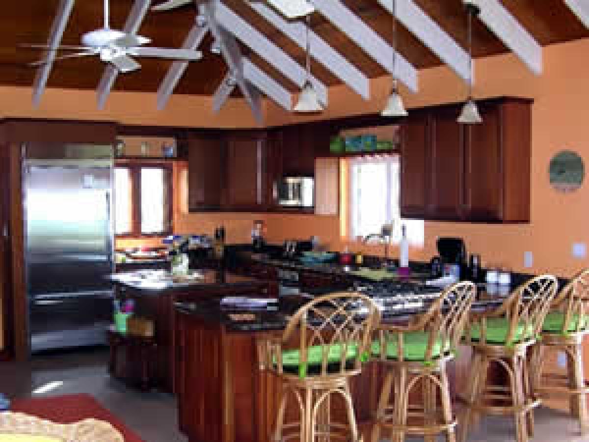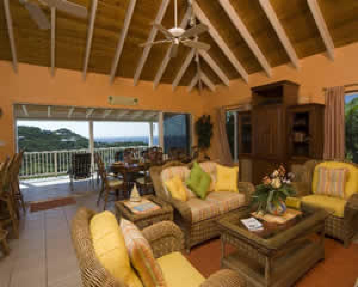 Crystal Seaview's bright tropically inspired decor is felt throughout the wonderful villa, filling each space with its own vibrant Caribbean charm. It has a spacious, fully air conditioned great room and a complete gourmet kitchen. Spectacular views surround the great room. There are four bedrooms (two on each level) that provide a cool air conditioned refuge during the day. The spacious master bedroom includes a bathroom, sitting area, and a small bedroom perfect for children. Two upper level bedrooms connect and are separated by a bath; perfect for families. Crystal Seaview's pool deck offers both sun and shade to enjoy the balmy tropical days. It looks out over the sailboats moored in scenic Chocolate Hole Bay. The enormous covered dining deck easily accommodates all guests and invites you to linger over your meals.