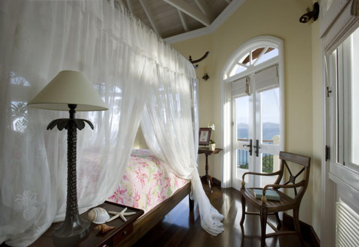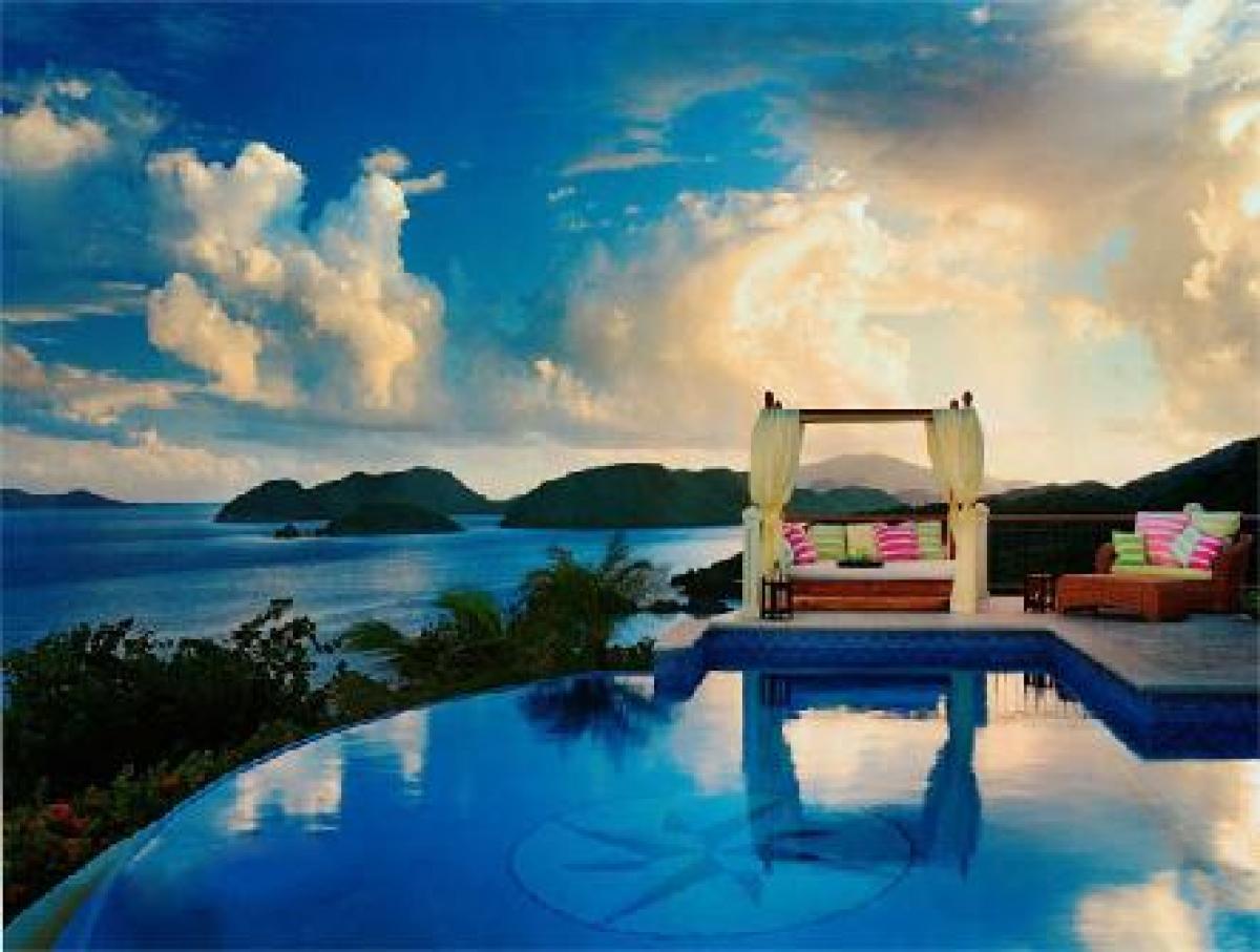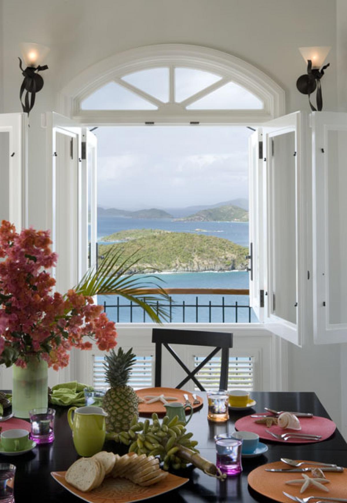 The superior architecture of Hawksview Estate captures the essence of old world sophistication and charm with its lofty exposed beam ceilings and gracefully arched windows and doors. Situated on five very private acres within the Virgin Islands National Park boundaries, Hawksview Estate is located on the north shore of St. John, on the ridge top between Hawksnest Bay and world renowned Trunk Bay, providing a panorama of breathtaking views. The Hawkview Estate house portals rich mahogany woodwork frames, and the interior floors are tiled in Bulgarian limestone and Italian marble. Hawksview Estate's tasteful West Indian architecture showcases the myriad of pristine natural beauty visible at every glance from within the villa, while the stylish mix of Caribbean and European furnishings harmonize to create a casual and comfortable ambiance.
