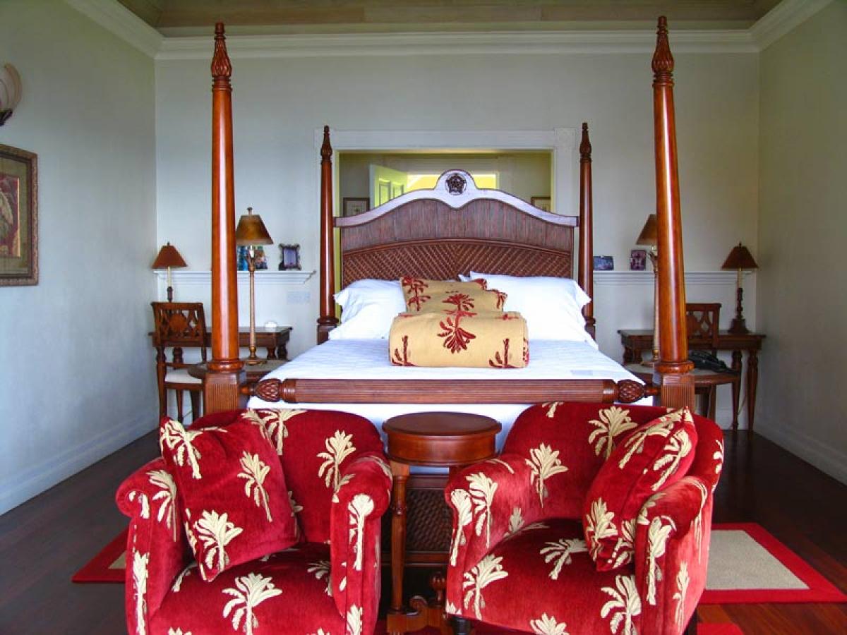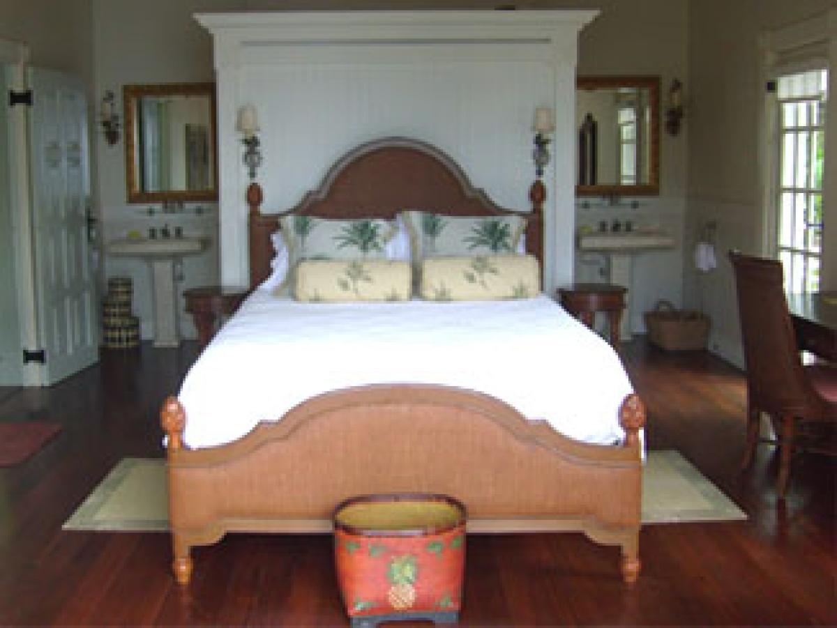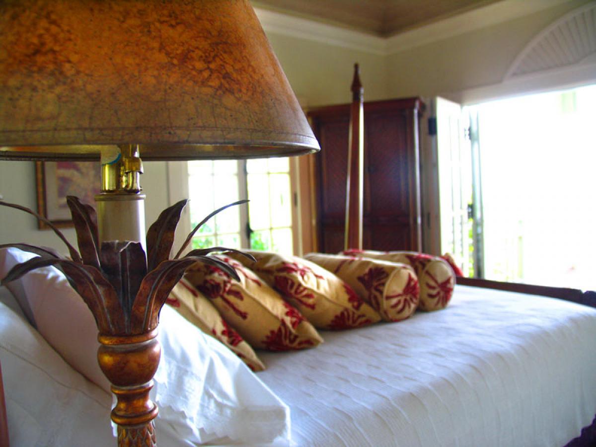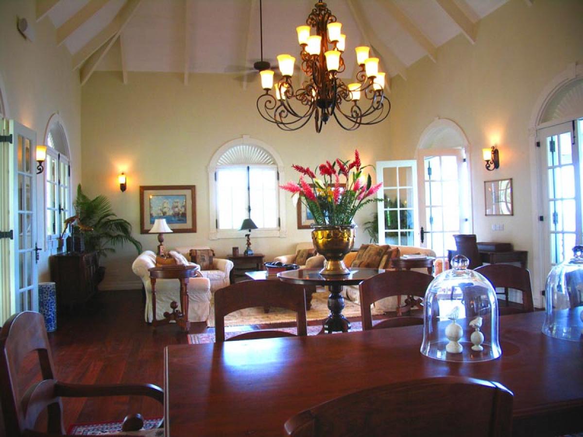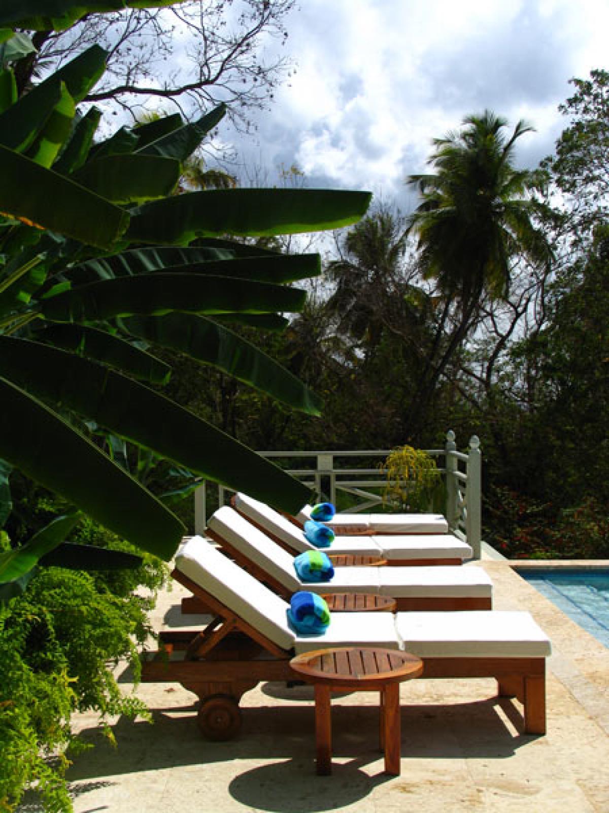 Arc En Ciel is situated above the Caribbean Sea and is a short distance from Jalousie Beach and hotel. Soufriere, which is a sleepy fishing village, also boasts the drive in volcano, hot waterfalls, diving and snorkeling at Anse Chastanet beach, and exotic tropical gardens and mineral baths at Diamond Estate. Arc En Ciel has been imaginatively designed to a very high standard by architect Lane Pettigrew, who has also created the interior design with hand made furniture from Honduras, and some select pieces from Tommy Bahama. The house incorporates many aspects of traditional Caribbean style with its verandas, jalousie shutters, and wooden railings. It has been constructed as a number of small pavilions connected by verandas. The exterior of the house has been partially finished with a facing of hand chipped stones to resemble the exterior of the forts, which were constructed on the island many hundreds of years ago. The house is situated in an extensive, landscaped garden that has a wide variety of tropical flowers and trees. Arc En Ciel has 5 double bedrooms all of which are air conditioned with ceiling fans. Each bedroom has its own TV, DVD player, and stereo. Bedroom 1 has a queen size bed and a patio with a unique view of Petit Piton. There is an en suite bathroom, where the wall facing Petit Piton is glass, so guests can enjoy views of this mountain from the jacuzzi bath and the shower. There is a private swimming pool and sun deck that is situated off the bathroom, in an enclosed garden area. Bedrooms 2 and 3 each have a queen size bed, a private patio, and an ensuite bathroom with shower and jacuzzi. Bedrooms 4 and 5, which are situated downstairs and open onto the swimming pool deck, each have two single beds, a private patio, and an en suite bathroom with shower and jacuzzi. The living/dining room is situated in the center of the house and is tastefully furnished and equipped with a TV, DVD player, and stereo. The formal dining table can seat 10. This room opens out onto a patio which leads to a spectacular dining gazebo, where guests can dine with the backdrop of the Caribbean Sea and the Pitons. The balance of the entertainment areas are situated downstairs. Here you can enjoy the outdoor living of the Caribbean in the large, covered patio, with a casual dining area and bar with its own fridge. This leads onto an extensive pool deck and a series of smaller pool patios. There is a comfortable, air conditioned family room with two large sofas, one of which can convert into a double bed. The infinity edge pool weaves its way around this area and includes a stone cave with a waterfall.