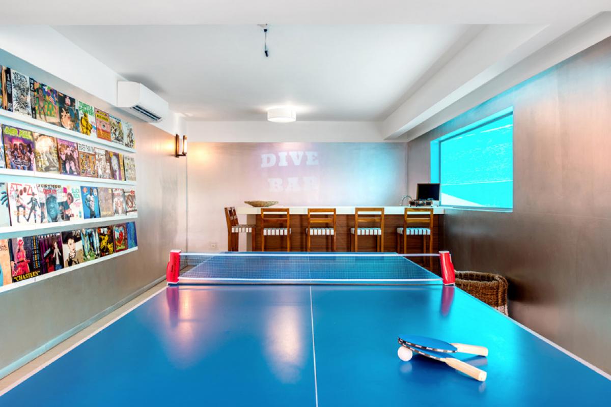 The villa has a large games room on the lower level with foosball and ping pong table and a bar that has views in to the swimming pool. The property also has a volleyball and bocce court.