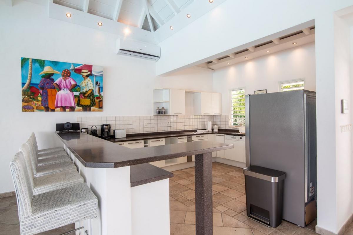The living room has satellite TV, stereo and piano and opens directly onto a terrace with large salt water pool and gazebo and outside dining and seating area. The 3 bedrooms each have en-suite bathrooms and air conditioning. Just a 5-minutes drive from two of St. Martin's most beautiful beaches, Baie Longue and Plum Bay, Villa Callisto is the perfect Caribbean retreat.