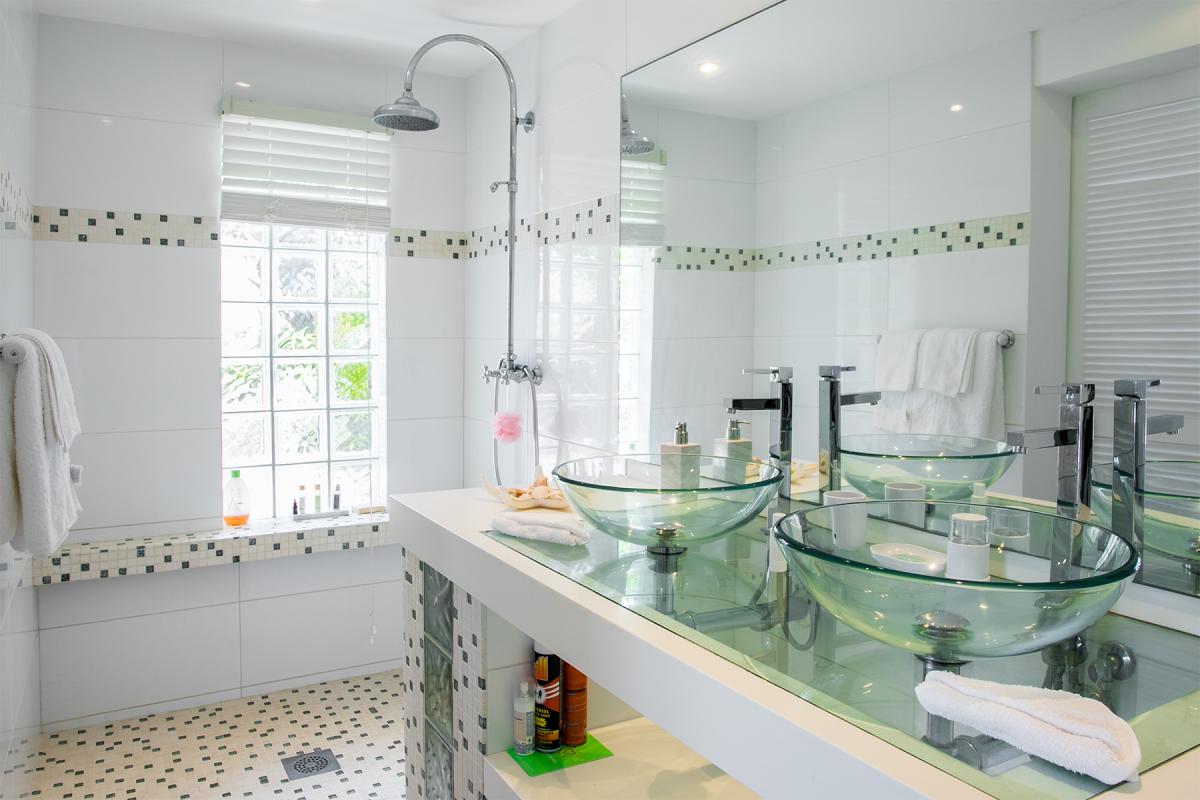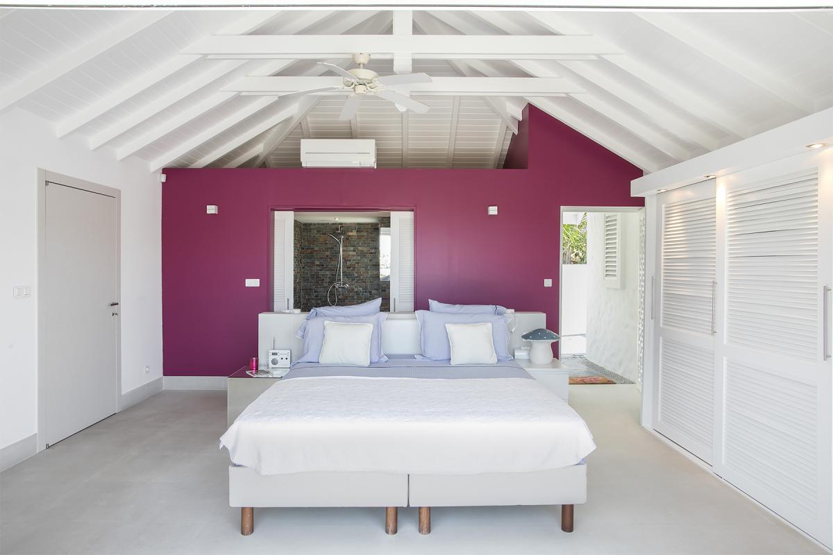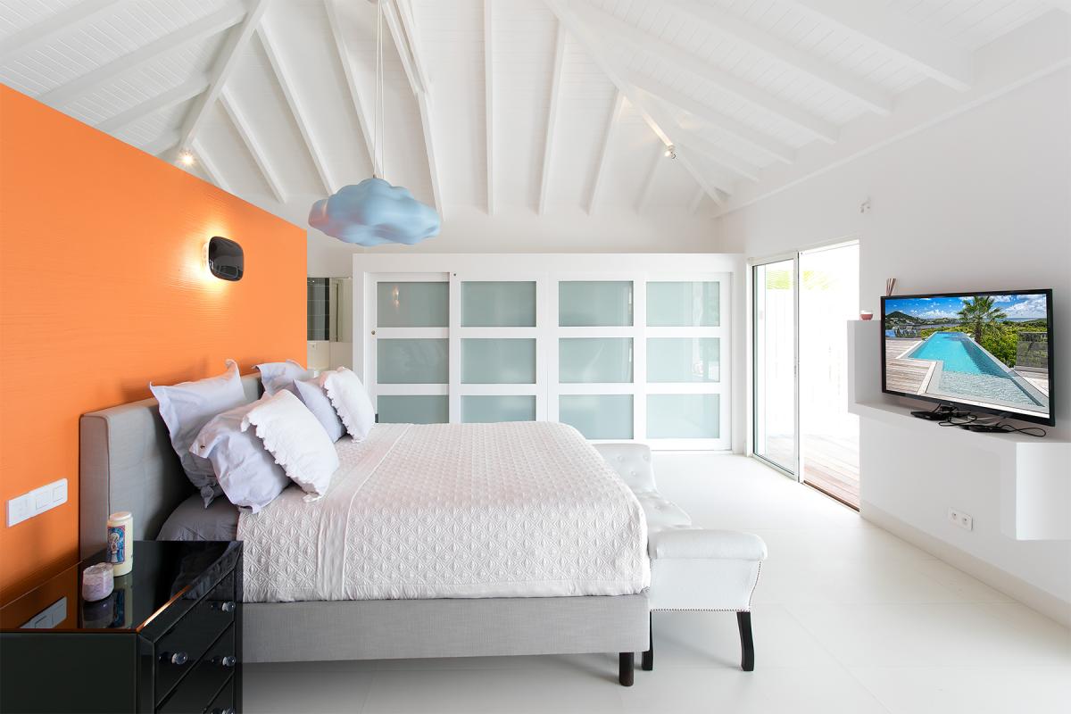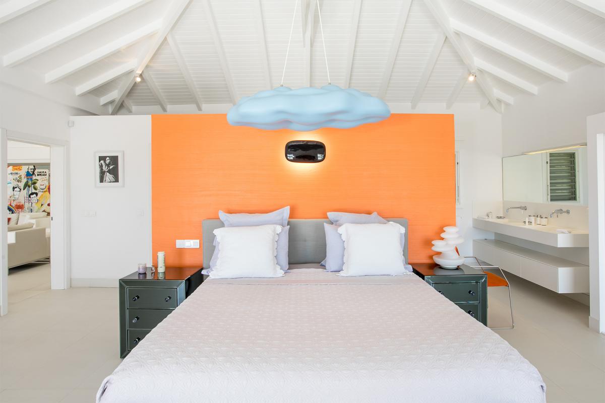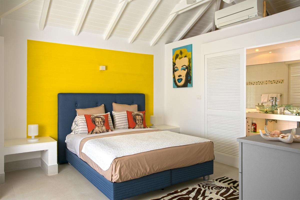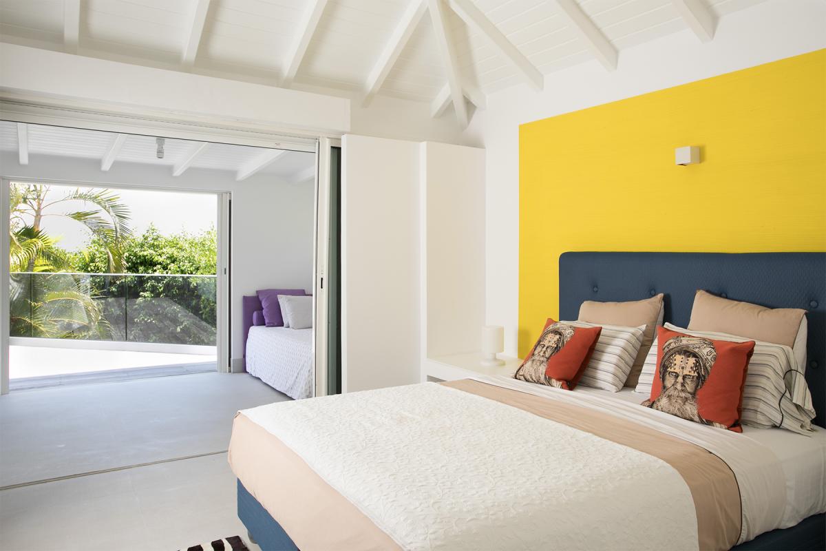 The three king size bedrooms have air-conditioning and access to the pool terrace. Each room has its own color accent of plum, lemon yellow and orange, contemporary art and luxurious en-suite bathrooms with chic Italian stone tiling.