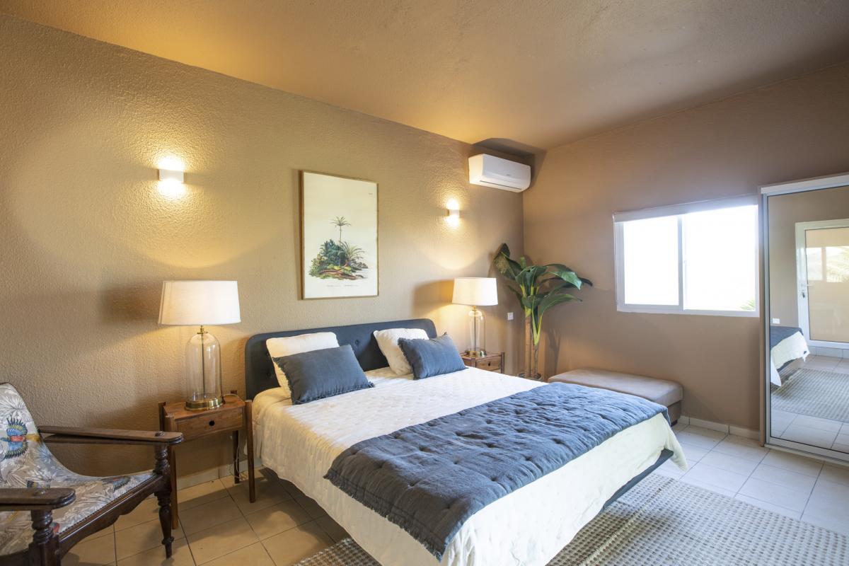 Bedroom 5: King-sized bed, an ocean view, a fan, and air conditioning. This room also has an ensuite bathroom.