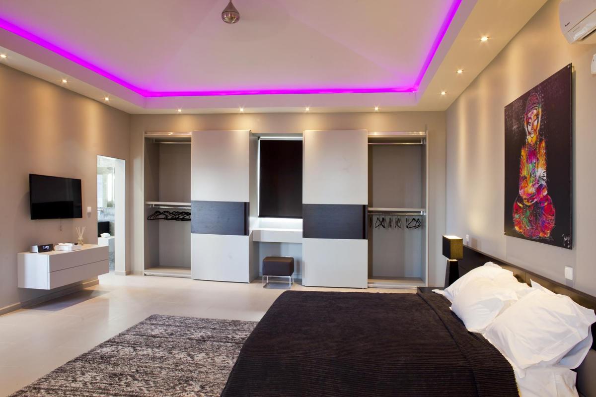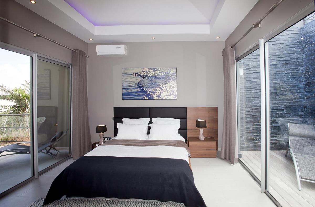 - Bedroom 1: King bed, en suite bathroom, terrace, TV, AC