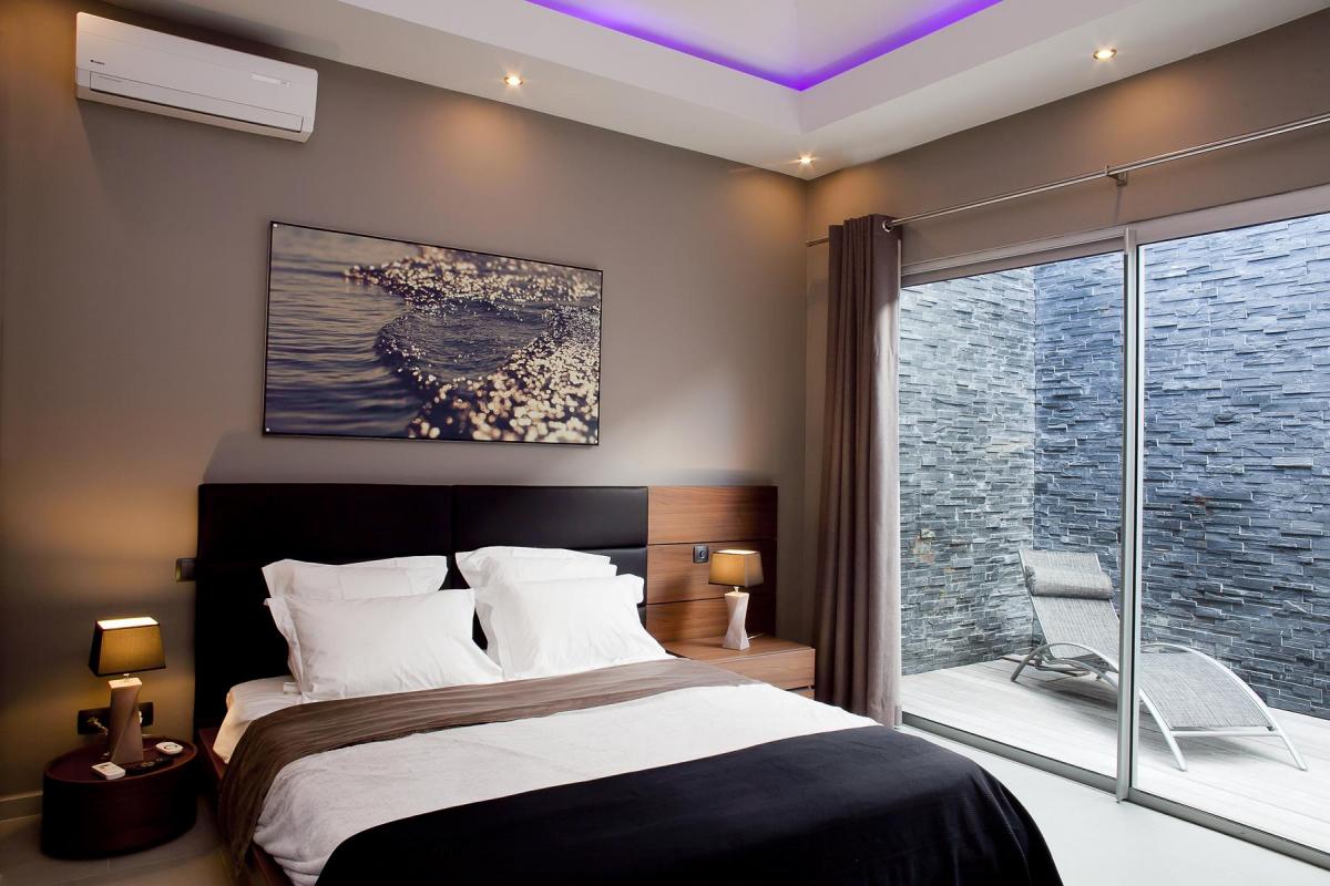- Bedroom 2: King bed, en suite bathroom, terrace, TV, AC