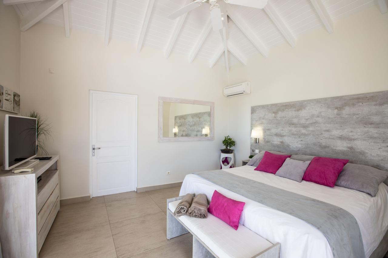 Giselle’s heated pool on the spacious terrace overlooks Plum Bay Beach and the sumptuous setting sun. This superb St Martin rental has a 180º view of the crystal blue waters of the Caribbean and is but a short 5-minute walk to the beach.