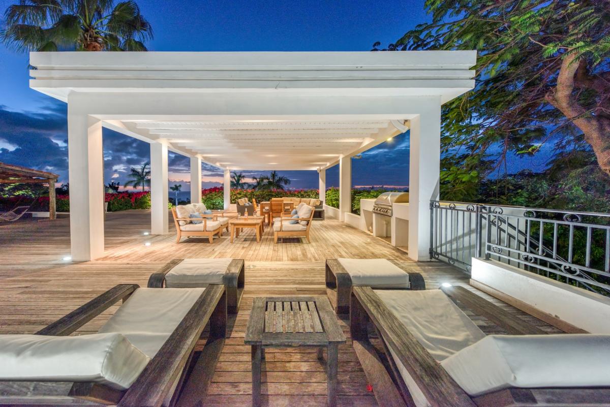 Beautifully designed gardens surround the house and terraces. Epi wood decks on multi levels offer endless options for dining, lounging and sunning. You can be private or together with your friends or family. The upper deck flows off the main indoor living area. Under wide covered gazebos, you can lounge, dine or fire up the barbeque. Step down to the gorgeous lower level for a swim in the inviting pool surrounded by covered terraces and sundecks. There is a separate kid’s playground for the young ones.
