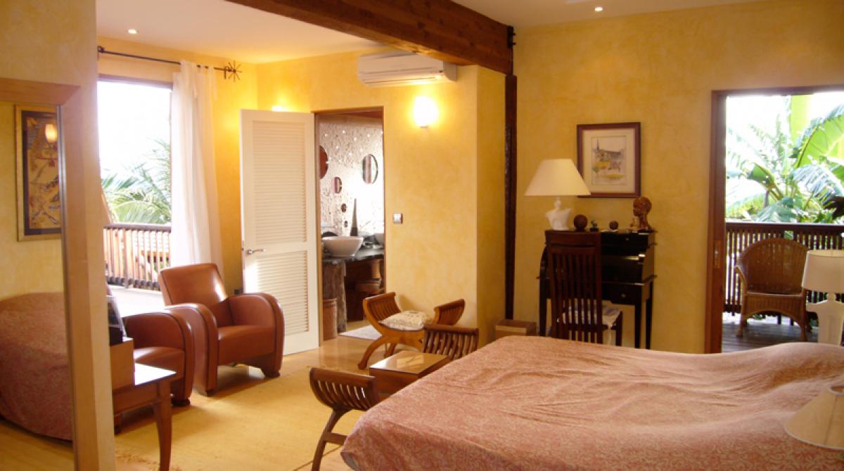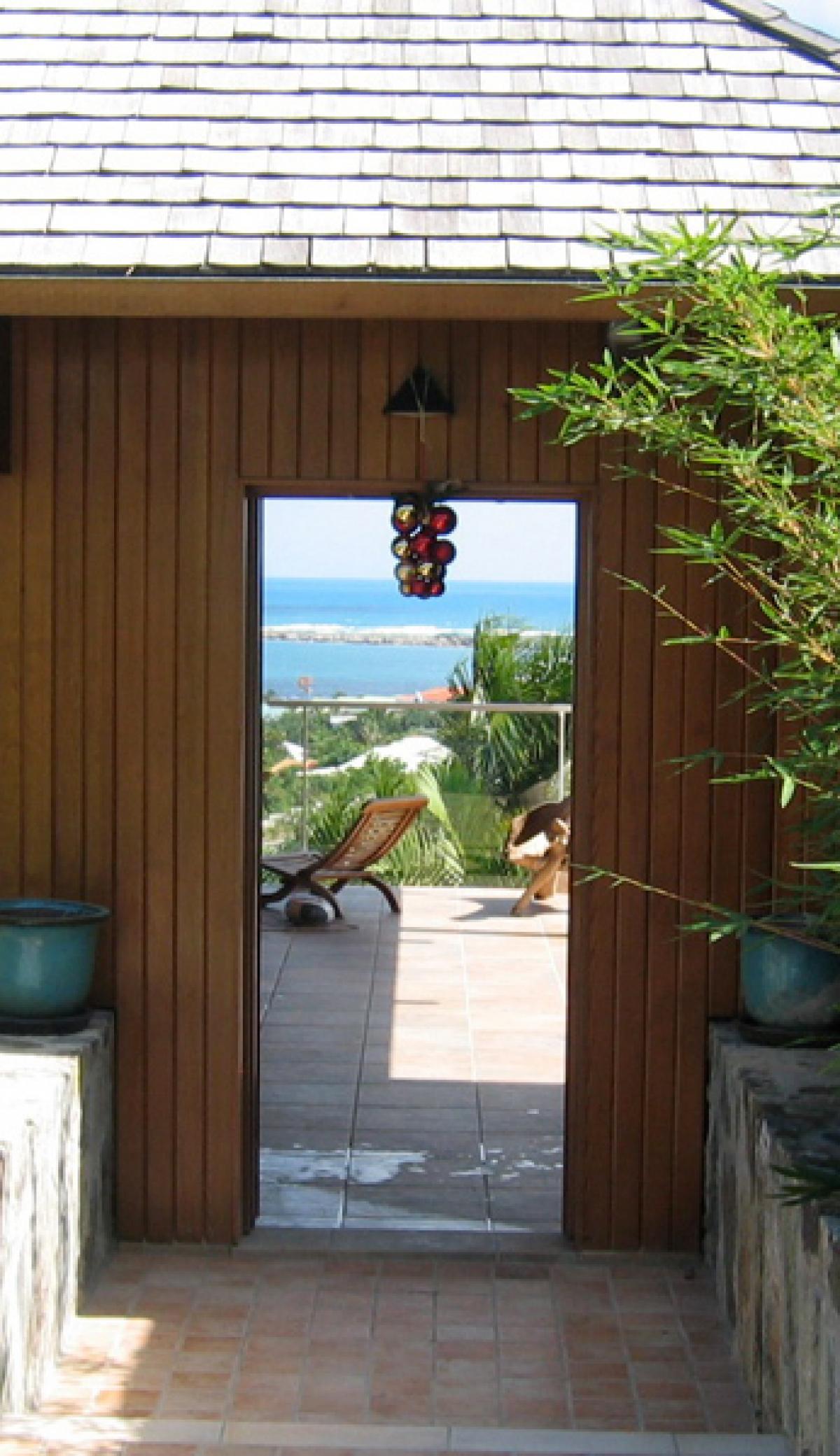 If your perfect vacation is to retreat from the world and relax, the restful ambiance of Haiku is for you. Perched high on the hills overlooking sweeping sunrise views of the ocean and Orient Bay, Haiku is the Indonesian inspired home of an architect, and reflects a level of design, quality craftsmanship, and attention to detail that is perhaps unique to this popular area. The villa comprises two distinct areas. The main living space with living/media room and adjoining gourmet kitchen and dining area, border the sun deck and inviting pool. The sleeping space is accessed by steps, and comprises the master bedroom, which overlooks and has direct access to the pool deck, and second bedroom; both with en suite bathrooms.