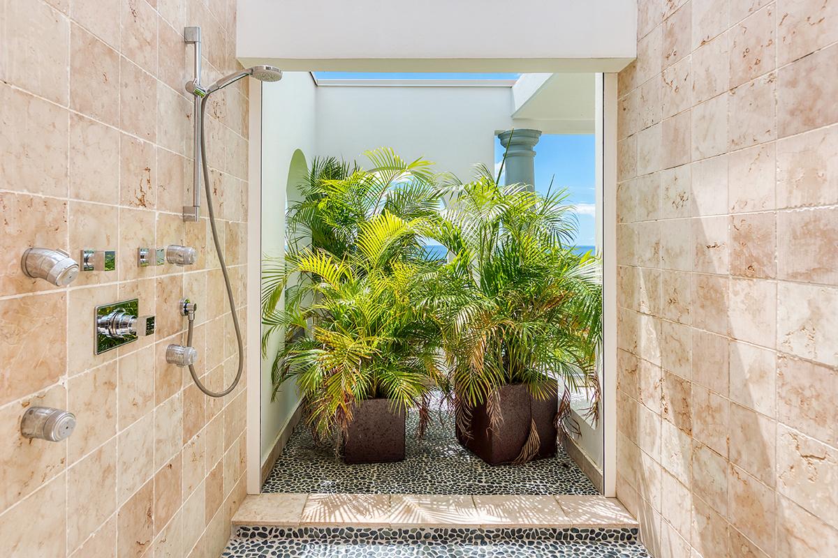 - Bedroom 4: King bed, en suite bathroom with shower, al fresco shower, TV, AC, ceiling fan