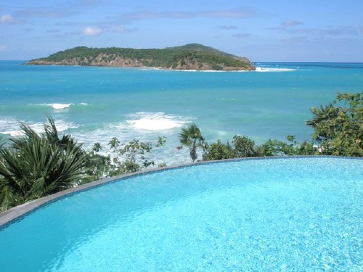 Neltjeberg Bay Villa is located on a pristine site where its exclusive location creates a unique and dramatic Caribbean five bedroom home. It has a beautiful, secluded adjoining white sand beach for private use. Enhanced with native stone, brick, and mahogany mill work, the unique architecture of the Neltjeberg Bay Villa captures the rich heritage of the Caribbean Islands. The grand gallery opens to a heated swimming pool with views of the inner and outer Brass Islands. Each of the luxurious five bedroom suites has its own balcony with spectacular ocean views. The unique location, set at the tip of the bay, allows visitors to witness the calm, still, and lapping of the ocean. When mother nature desires to put on a show, swells come crashing on the volcanic rock below this elevated home with an infinity edge stone pool, surrounded by indigenous cactus, palms, and sea grapes. The concealed beach provides off shore fishing for yellow tail, tarpon, and permit, and abundant opportunities for snorkeling. Relax and enjoy awe inspiring sunsets nestled in the warm, tranquil waters of the North Atlantic Ocean. Your vacation at this StThomas villa rental is the ultimate combination of luxury and security with 24/7 caretakers and security on site. The caretakers are available 24 hours to serve guests. Their cottage is situated on the property, but distant enough to provide privacy for guests. A chef with waitstaff, private driver, and other amenities are available as well. Deep sea fishing or island hopping is also available on the home's 45' Viking Yacht. Travel easily to secluded beaches, main islands, smaller islands, and cays throughout the Caribbean archipelago. Lobster traps have also been set in front of the home's coral reef.
