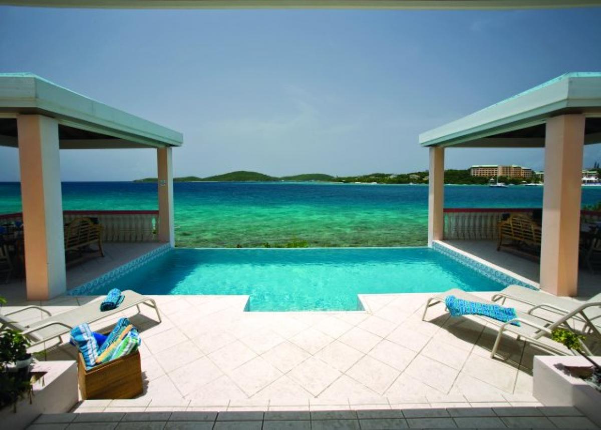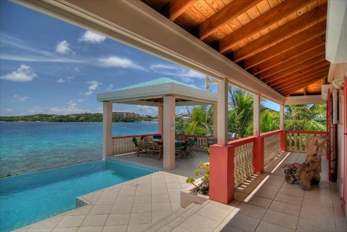 Colorful Caribbean gardens surround Villa Sea Star, a new luxury waterfront retreat located on East St. Thomas' Cabrita Point. Villa Sea Star features a private beach on property down the beach from the Ritz Club and the Ritz Carlton Hotel and Spa. Access via an electronic gate to this elegant residence built on two levels, ensures complete privacy. Just 24 feet from Villa Sea Star, a sand and coral beach provides breathtaking views of Great Bay, Great St. James Island, St. John, and the Ritz Carlton, as you collect sea shells and delight in the magic of the live reef. A charming pathway winds through verdant fauna to Villa Sea Star's exclusively created sand beach for hours of intimate relaxation.