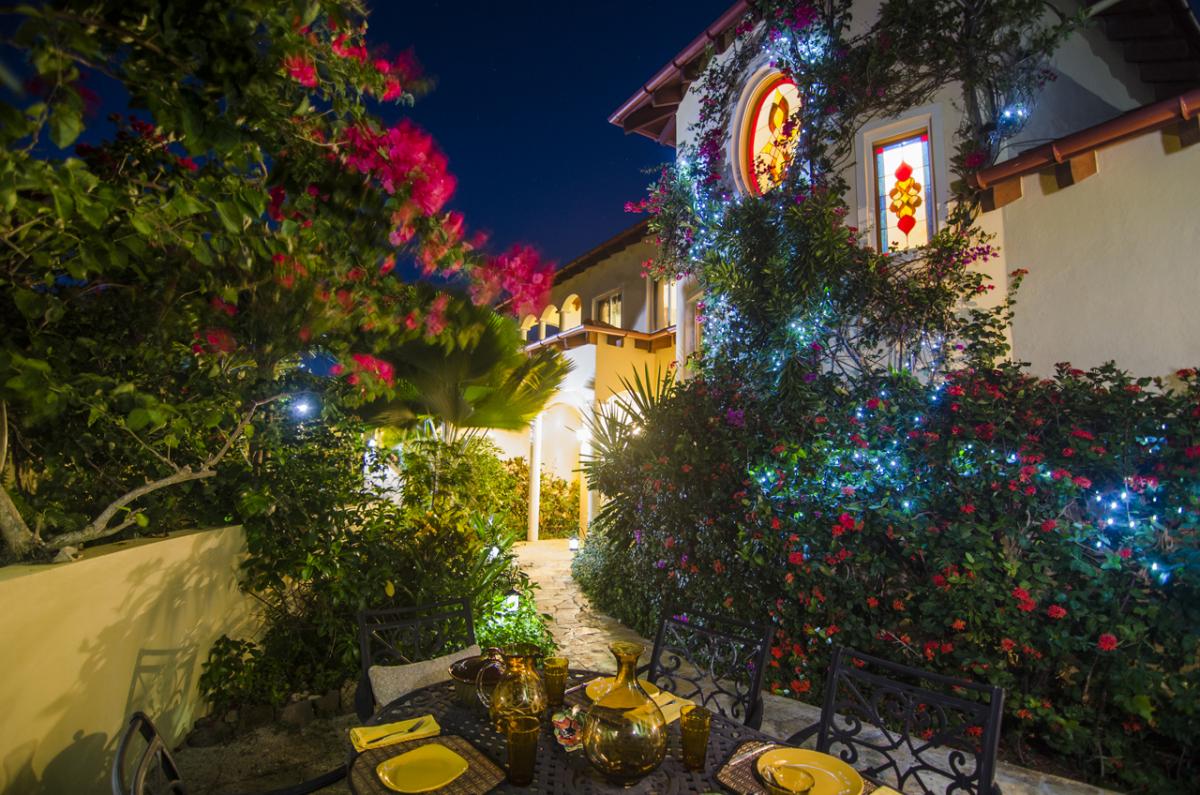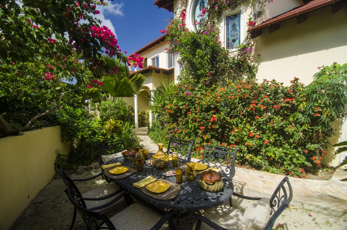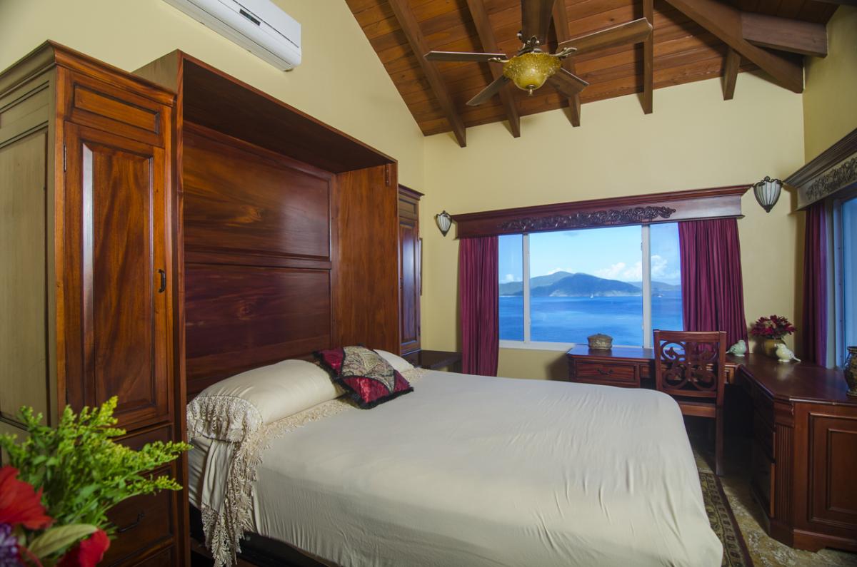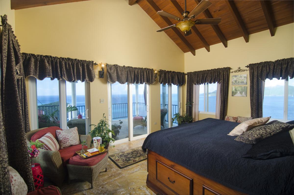 Anacapri Estate offers Italian-style architecture and one of the most beautiful panoramic views in the Caribbean. The 5000+ sq. foot estate includes 4 bedrooms (plus a queen size Murphy bed in the Office), 4.5 bathrooms, two-tiered pool deck with Infinity Pool, Gazebo, multiple covered and open porches, and a special “Place in the Rocks” patio. The Estate combines old world charm with modern conveniences of Internet access throughout, home theatre, and music sound system. Perched high on the hill in Cooten Bay, Anacapri Estate gets the most wonderful Caribbean breezes which provide for comfort and relaxation in this natural quiet setting.