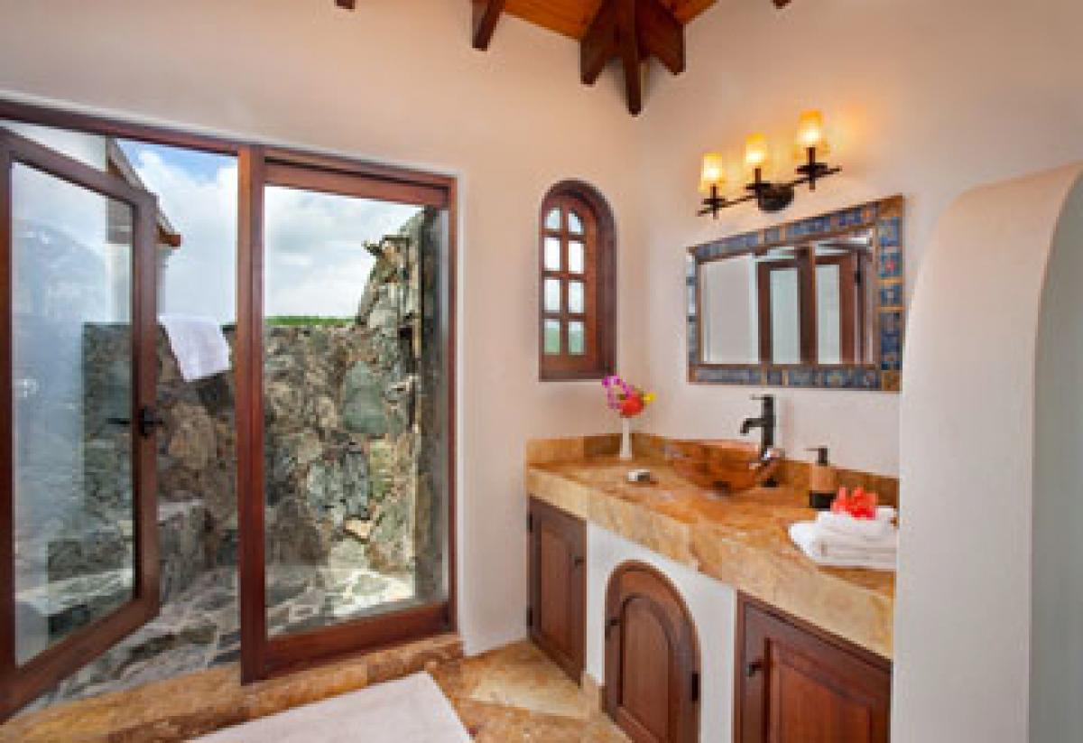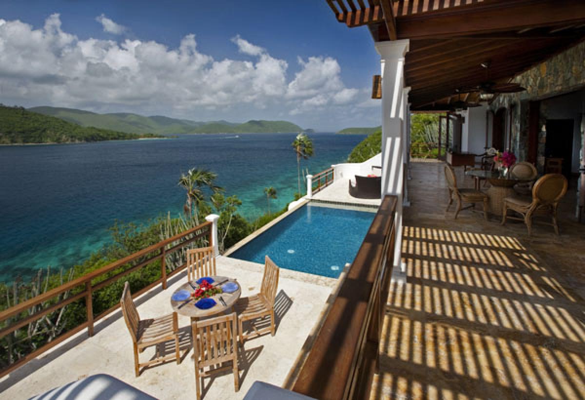 New in February of 2009 this two bedroom villa has a superb layout, including a fully equipped kitchen, an open living and dinning area, a large pool deck, outdoor dinning areas, and two identical bedroom suites separated by a fabulous great room with a soaring 18 foot ceiling. Each bedroom suite has a king bed, its own balcony, and a private bathroom with an outdoor shower offering views of the tranquil ocean below. Blackbeard's Hideaway's inviting ambiance, romantic appeal, and simple design has made this lovely waterfront villa popular with the honeymooners. Blackbeard's Hideaway offers fabulous ocean views, cool tradewind breezes, beautifully manicured gardens, and lush vegetation all around for optimal seclusion and privacy. Blackbeard's Hideaway is simply the perfect hideaway for a honeymoon, small family, or two couples exploring the BVI. Along with Blackbeard's Hideaway, Steele Point and Gestalt can also be rented for a total of 11 bedrooms.