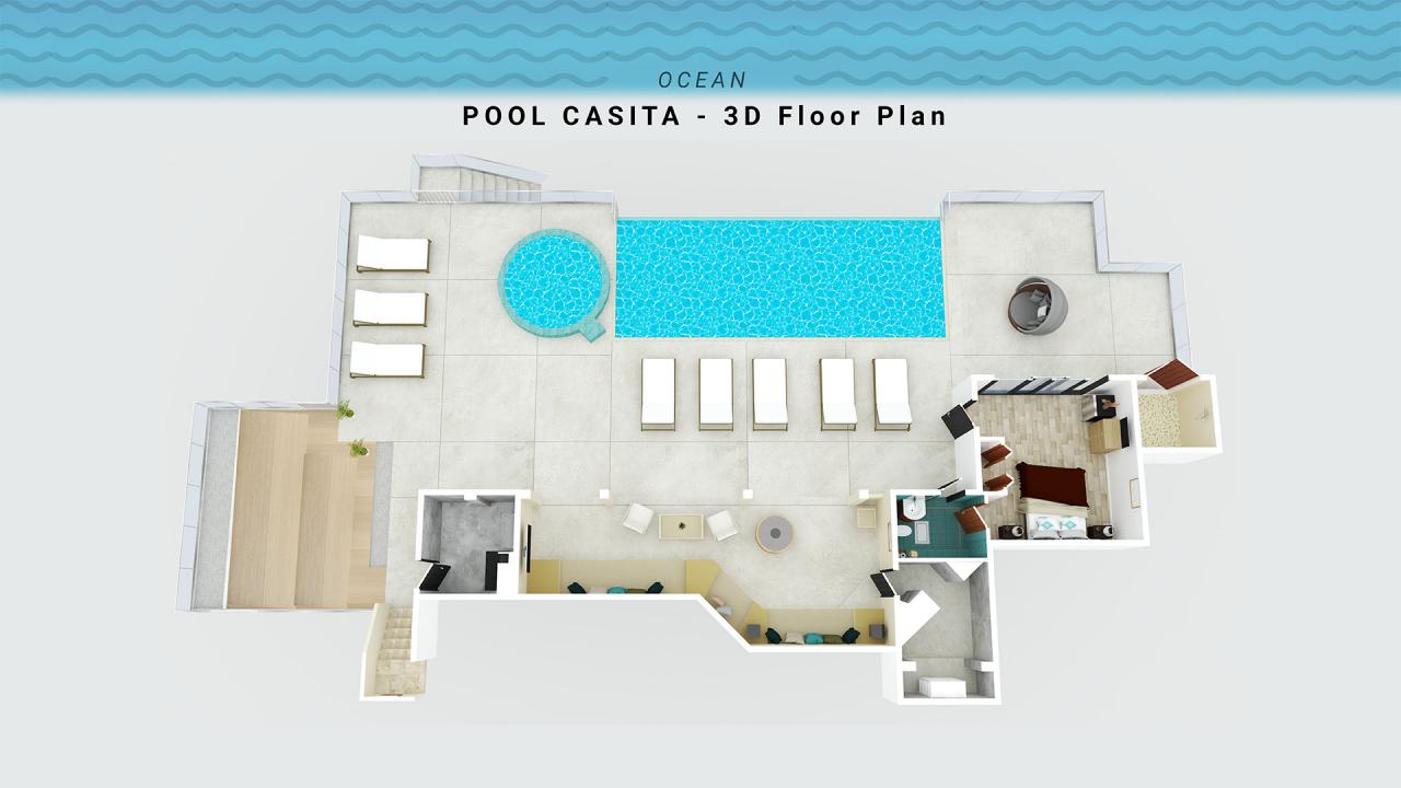 • Pool Casita: King bed, private ensuite bathroom + outdoor shower, ocean + pool views