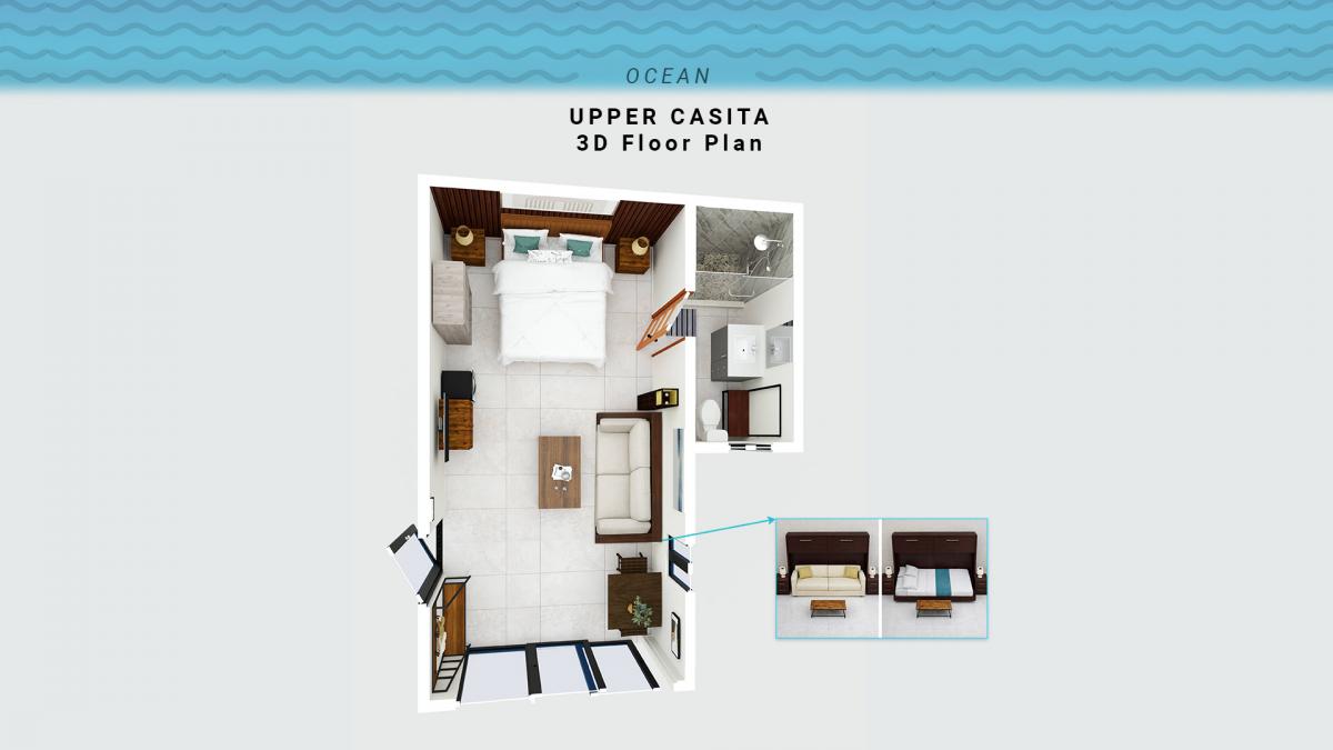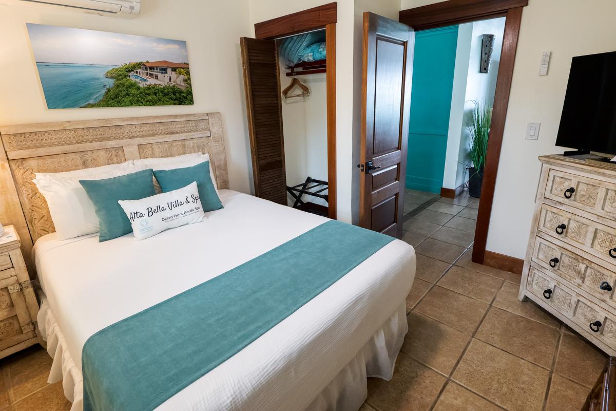 • Upper Casita: King bed + Queen Murphy/Wall bed (a full second bed with a luxury foam mattress), private ensuite + partial ocean view