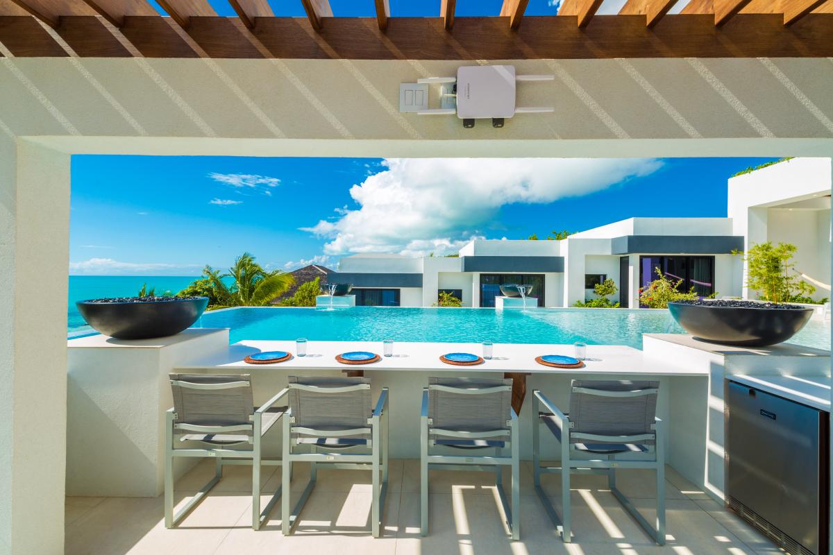 Wind Chime villa is located on Turtle Trail, a coastal residential region that boasts some of the finest vistas on the island. Wind Chime is a four-bedroom and four-bathroom Turks and Caicos villa rental with unique features. This Turks and Caicos rental is surrounded around the four elements - earth, fire, water, and air. Every care has been taken to enhance balance while enabling guests to focus on relaxation, rejuvenation, and recharging.