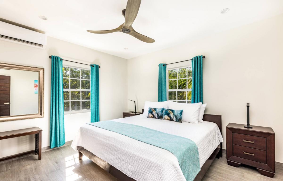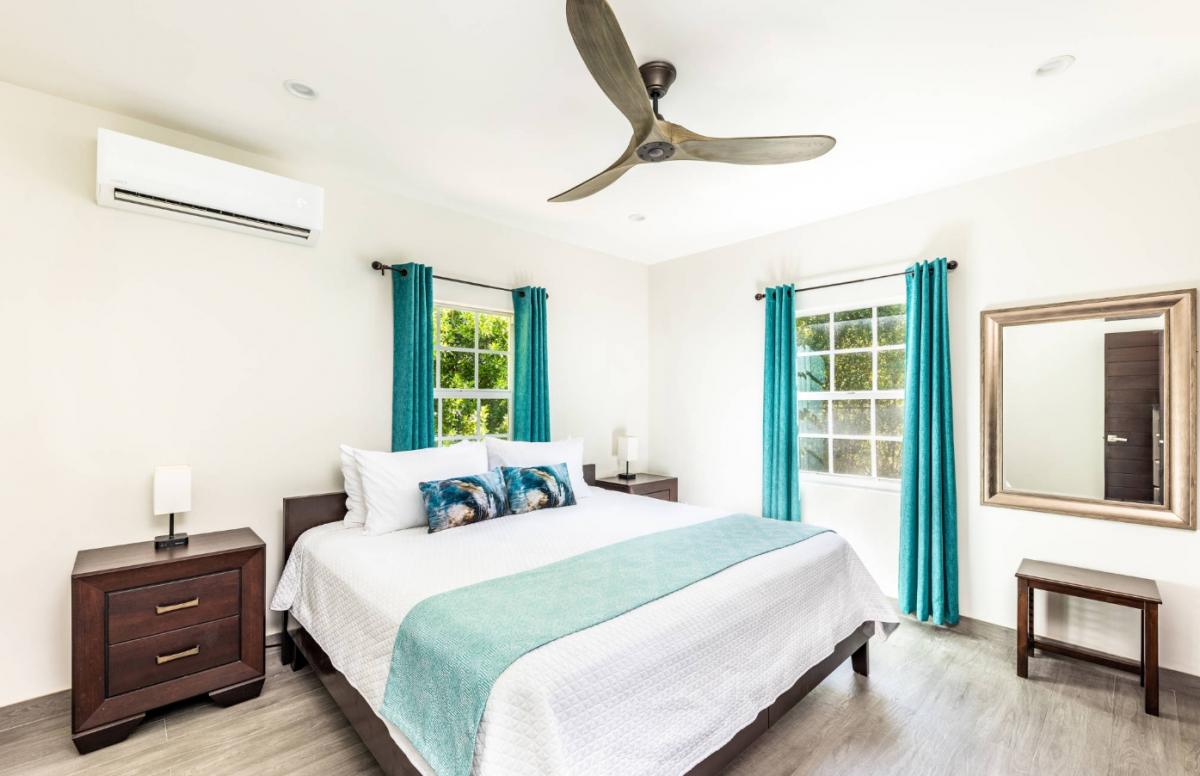 Bedroom 2: King bed, ensuite bathroom with walk-in shower, AC, ceiling fan