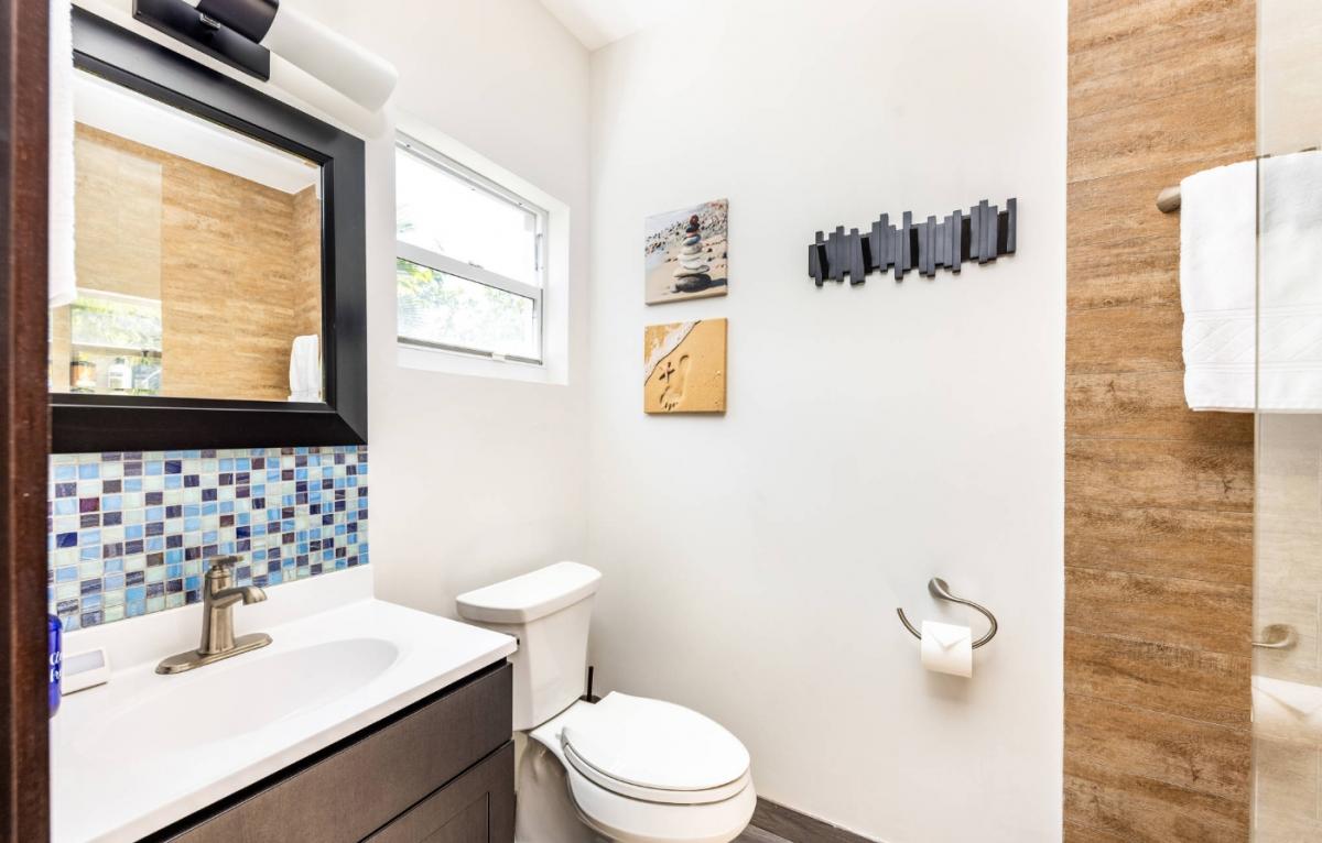 Bedroom 1: King bed, ensuite bathroom with walk-in shower, AC, ceiling fan