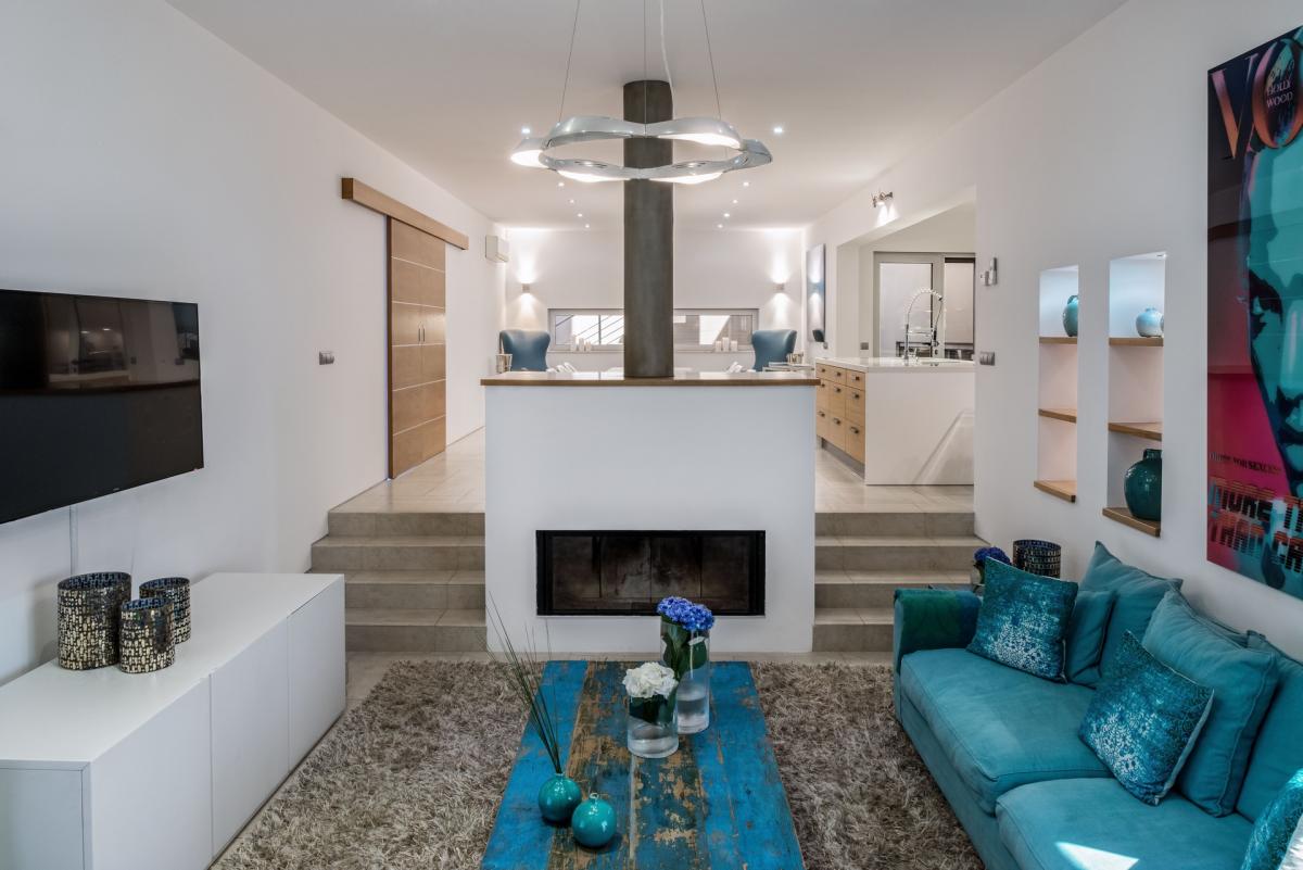 Clever architecture, stellar design and technology all play a part in making sure Villa Mar Azul is a hit with all her guests. The modern and crisp decor of this villa highlights the Mediterranean with eye-catching blues and modern artwork. The main kitchen is only steps away from the central living area with a view of the infinity pool terrace. On the next level down, guests will find a cozy media room with a fully equipped kitchen making snack preparation a cinch!