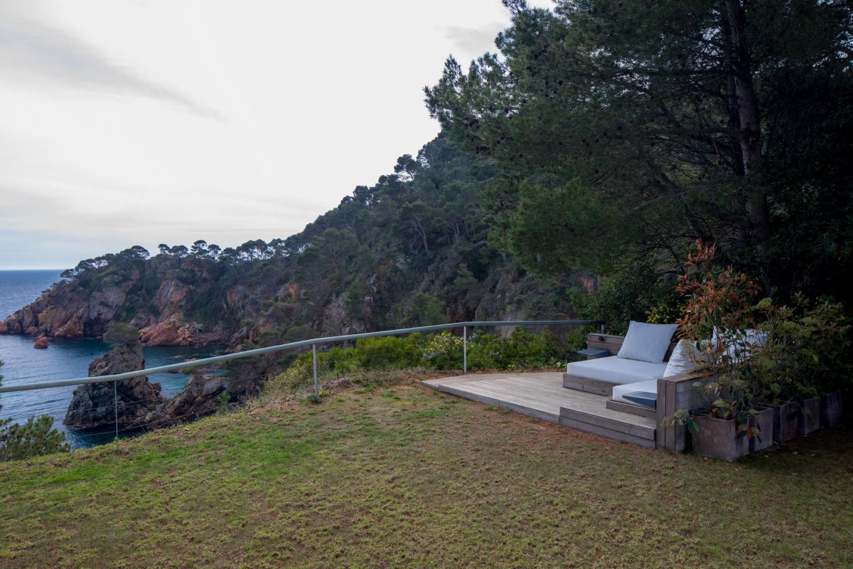 Stretching from the home to the sea is a vast green lawn which boasts a pool, as well as a seaside “chill-out” area with breathtaking views of the rocky cove, spattered with pine trees, creating the quintessential Costa Brava backdrop.
