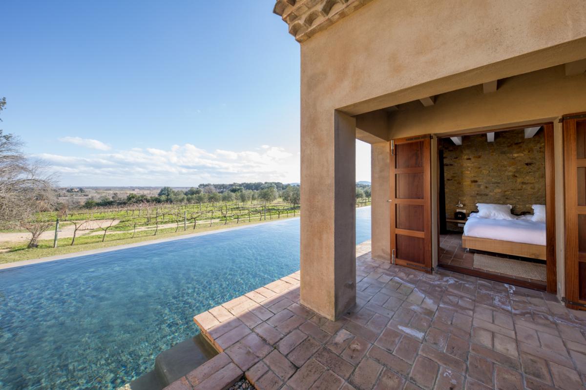 An olive tree lined drive greets guests upon arrival to the exquisite Olive Grove estate, a quintessential Emporda villa with a refreshing contemporary design twist. Upon entry into this incredible home, floor to ceiling windows create an unforgettable first impression with expansive views of the property’s grounds, filled with fields and olive groves as far as the eye can see.