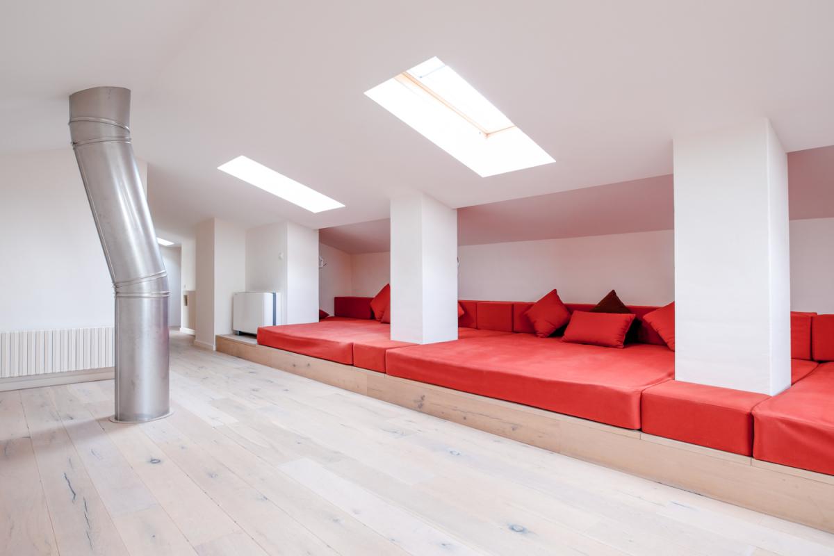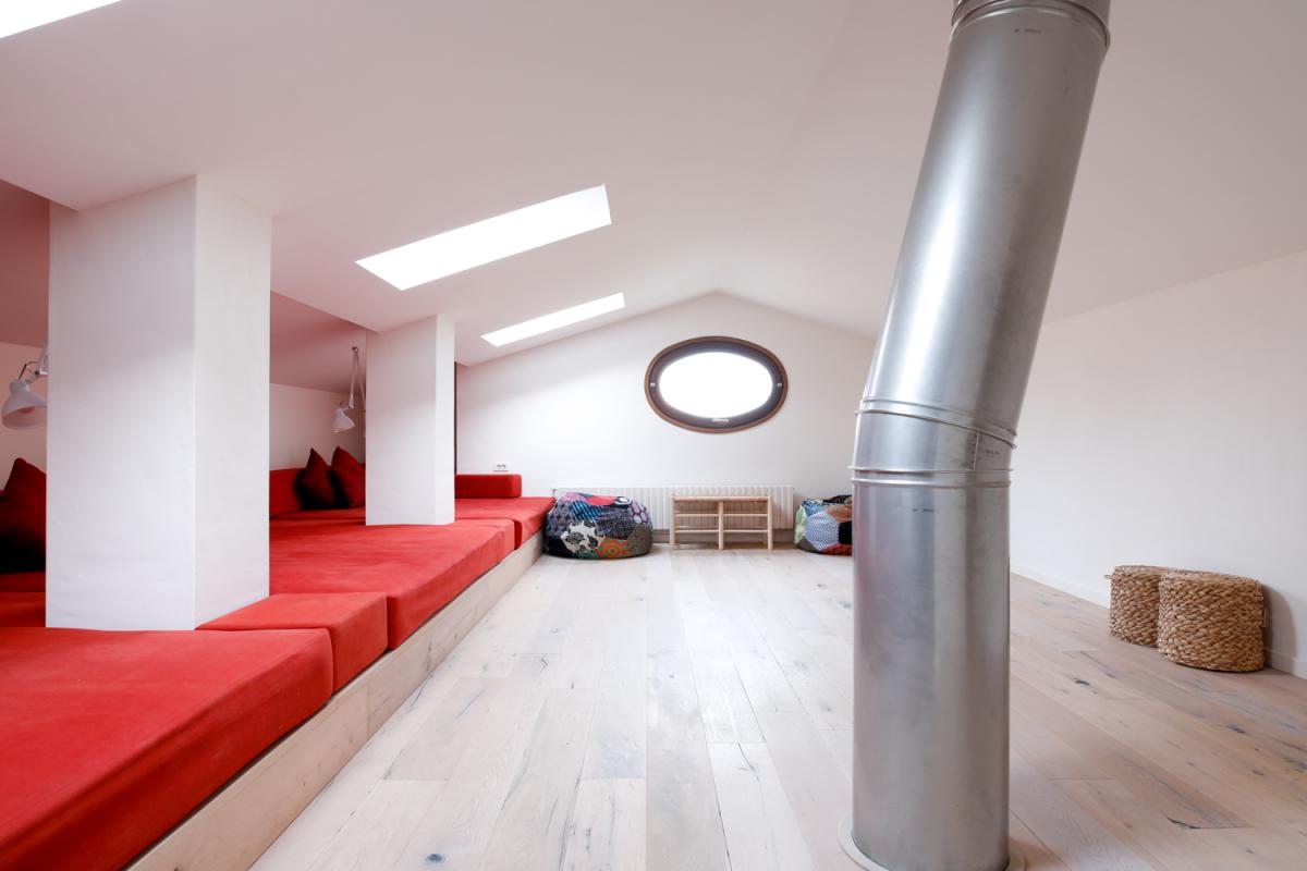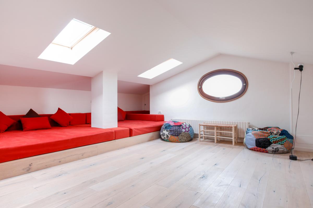 Upstairs, the entire top floor is a light filled open space with vaulted ceilings, three large skylights and three king size beds oriented for lounge style seating – perfect for watching television or playing games! For added convenience, this area is served by a full bathroom with shower.