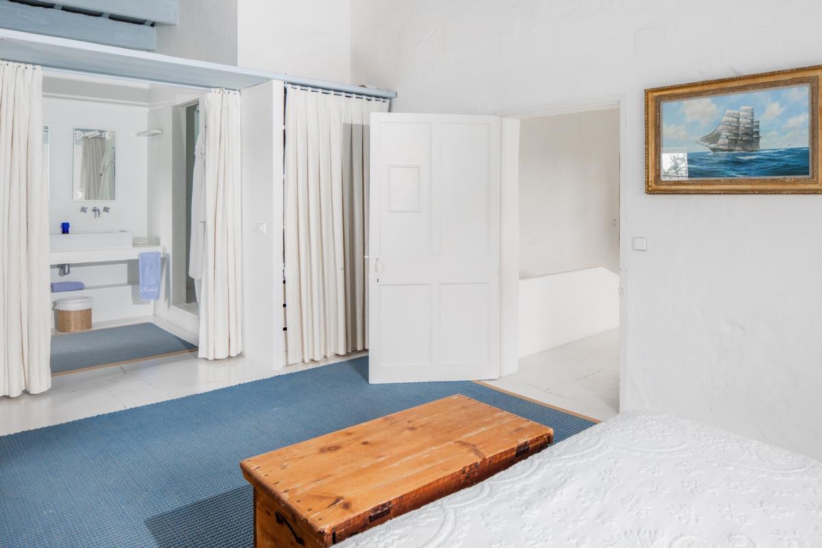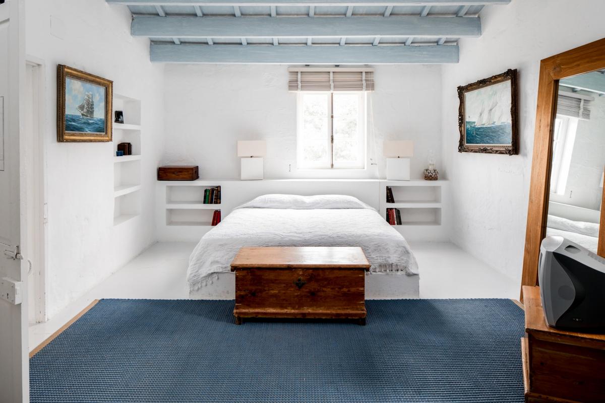 Up the staircase, located just off the home’s foyer, guests will find the master suite with king size bed and en suite bathroom with full shower and deep soaking tub. A small office joins the room to a large terrace, adorned with comfortable sofas and breathtaking views. Two additional guest bedrooms may also enjoy this space, each with two twin size beds and their own en suite bathrooms with shower/tub combinations.