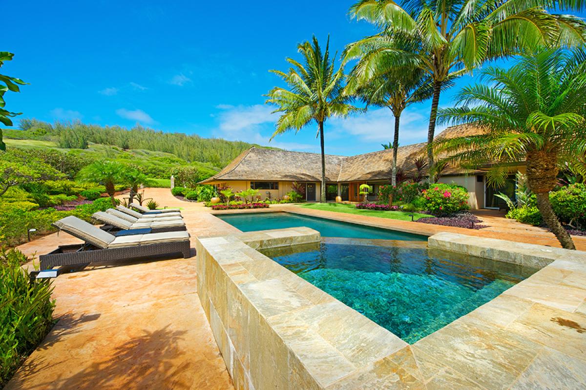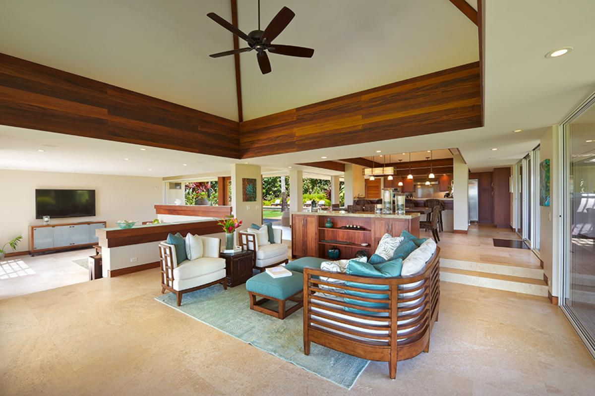 Villa Hale Nene has includes designer furnishings and a 70 inch flat screen TV in the media room. Stainless appliances, gas cooktop, and large island make cooking in the chef's kitchen enjoyable for both family and friends. The king master suite features a sitting area and 55 inch flat screen TV while the en suite bath includes his and her sinks, a large tub with view & fabulous private outdoor shower. Villa Hale Nene offers another king suite and another suite with two queen beds. In all, the home accommodates up to 6 guests. Close to beautiful beaches, golf courses, shopping and activities.