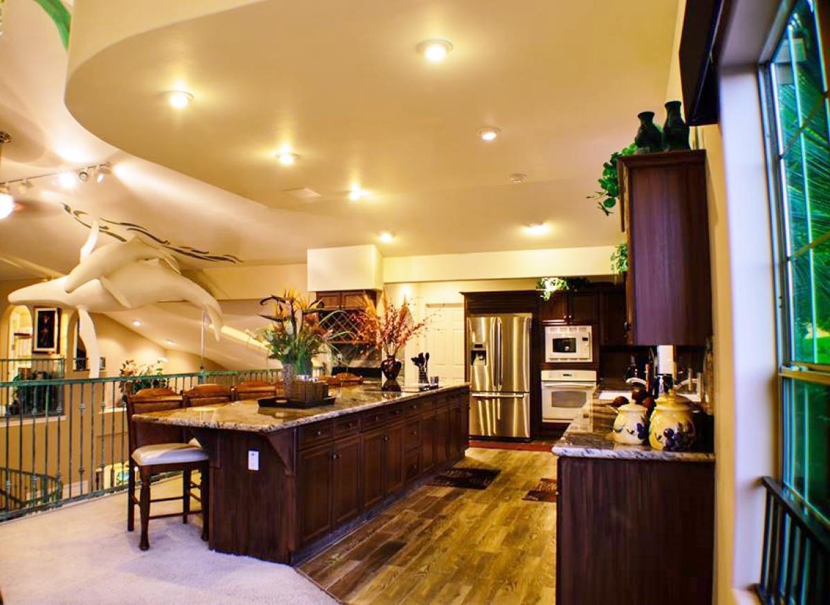 Entering Hale Kohola you immediately notice the marble floors, indoor waterfall with whimsical sculptured fish and inviting layout. Both Master Bedrooms are located on 1st level, each with ensuite bath. King Bedroom 3 and Queen Bedroom 4 are located first floor as well with an inviting living area central to all. A two story atrium rises before you in the from of an open winding staircase. Above is an amazing Humpback whale sculpture with several other artistic surprises in store. Hale Kohola has won several design awards, it is a villa of unique pleasures!
