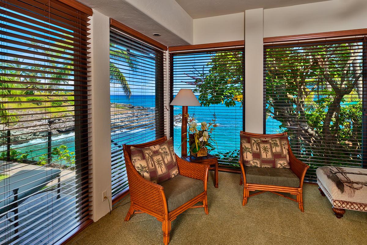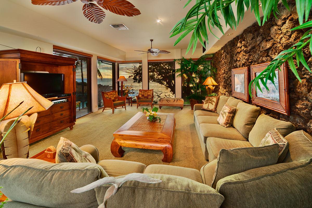 House of the Waterfalls or Hale O Wailele, in Hawaiian, is a beautiful oceanfront personal resort available as a 2 bedroom or 3 bedroom rental. The main home has 2 bedrooms, each have a private bath. There is also a detached cottage with 1 bedroom, 1 bathroom, and a queen sleeper sofa.