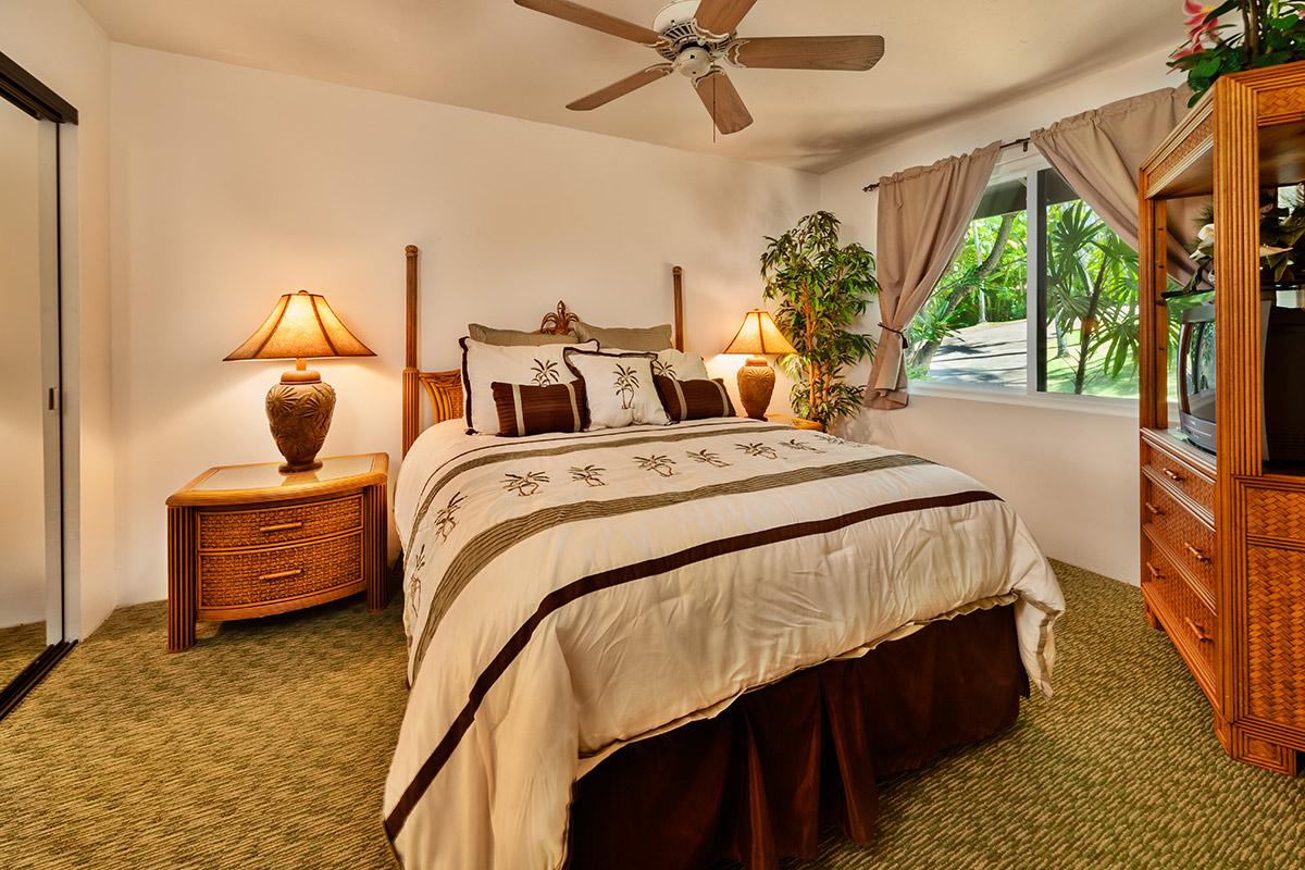 - Bedroom 3: Queen bed, full bath, TV