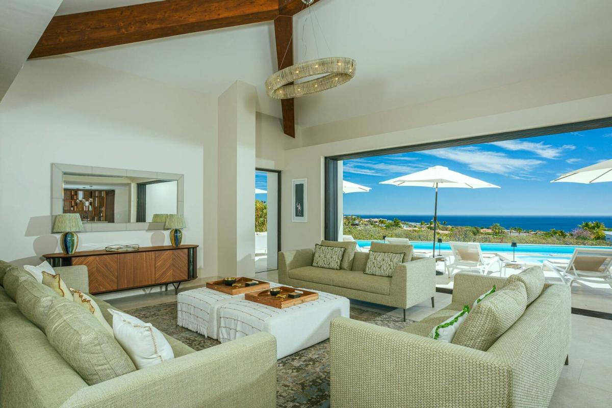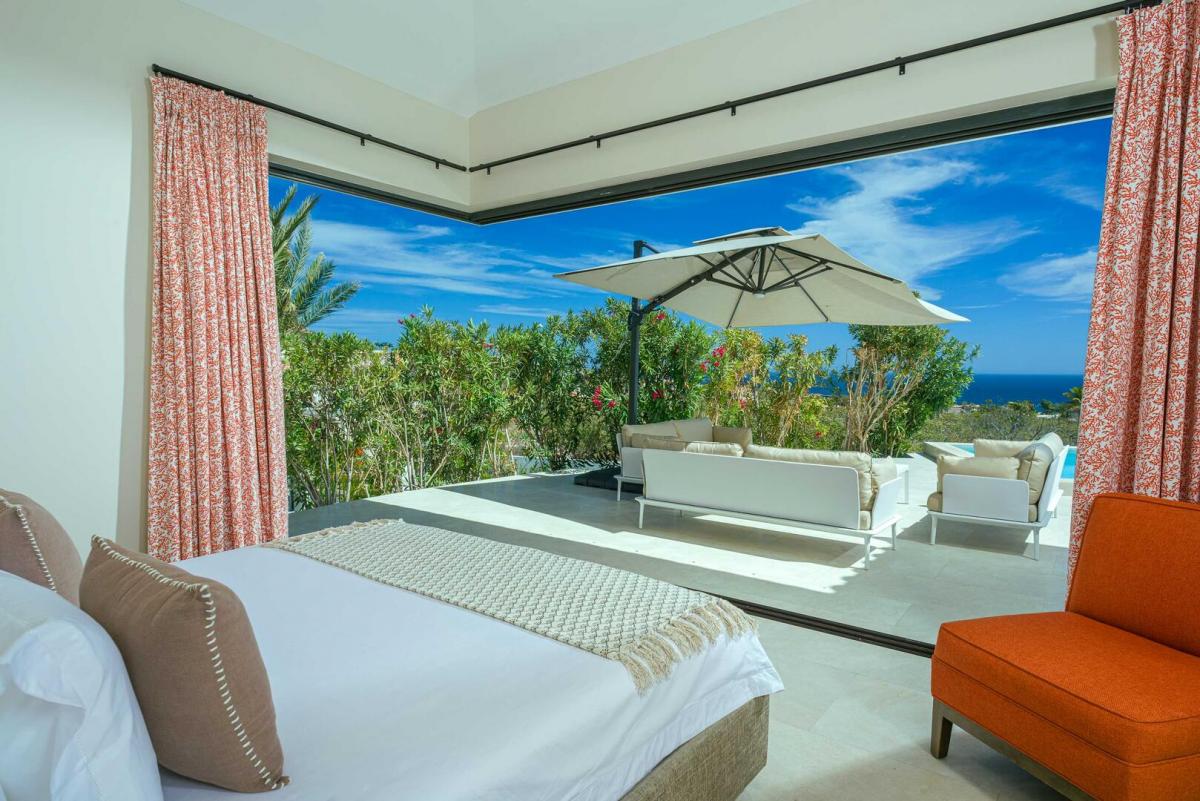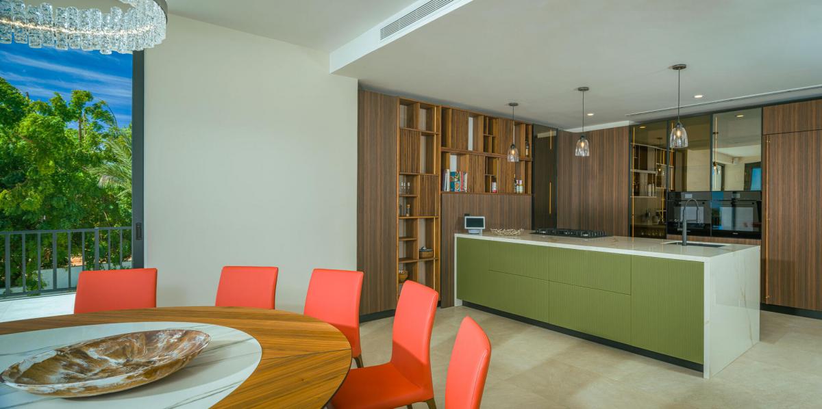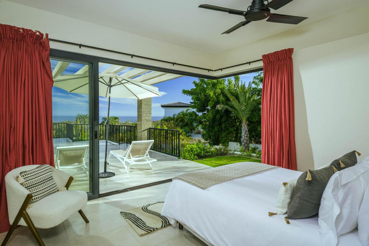 The villa features six beautifully designed bedrooms, five of which offer sweeping ocean views. Accommodating up to 12 guests, Casa Alba’s interiors showcase a refined sense of luxury, with custom Italian-made kitchen and bar, as well as hand-selected European furnishings and lighting. The bedrooms are styled with crisp white linens and soft, earthy tones, and include upscale features like digital TVs, smart speakers, and outdoor showers in select rooms. The open-plan layout seamlessly connects indoor and outdoor living, with large sliding glass doors allowing fresh ocean breezes and natural light to fill the space.