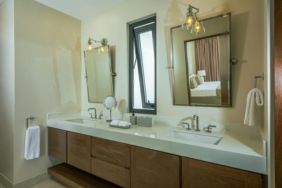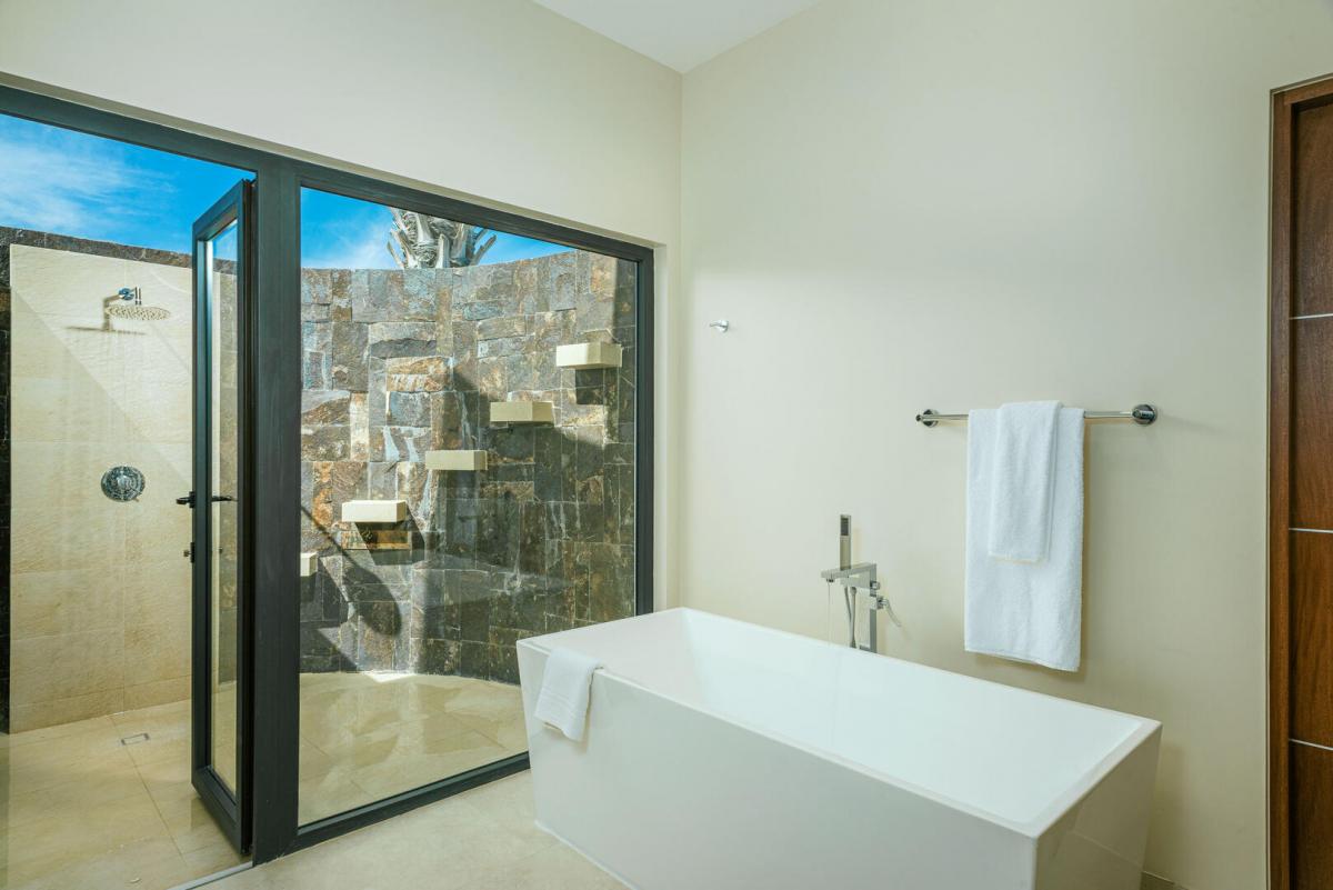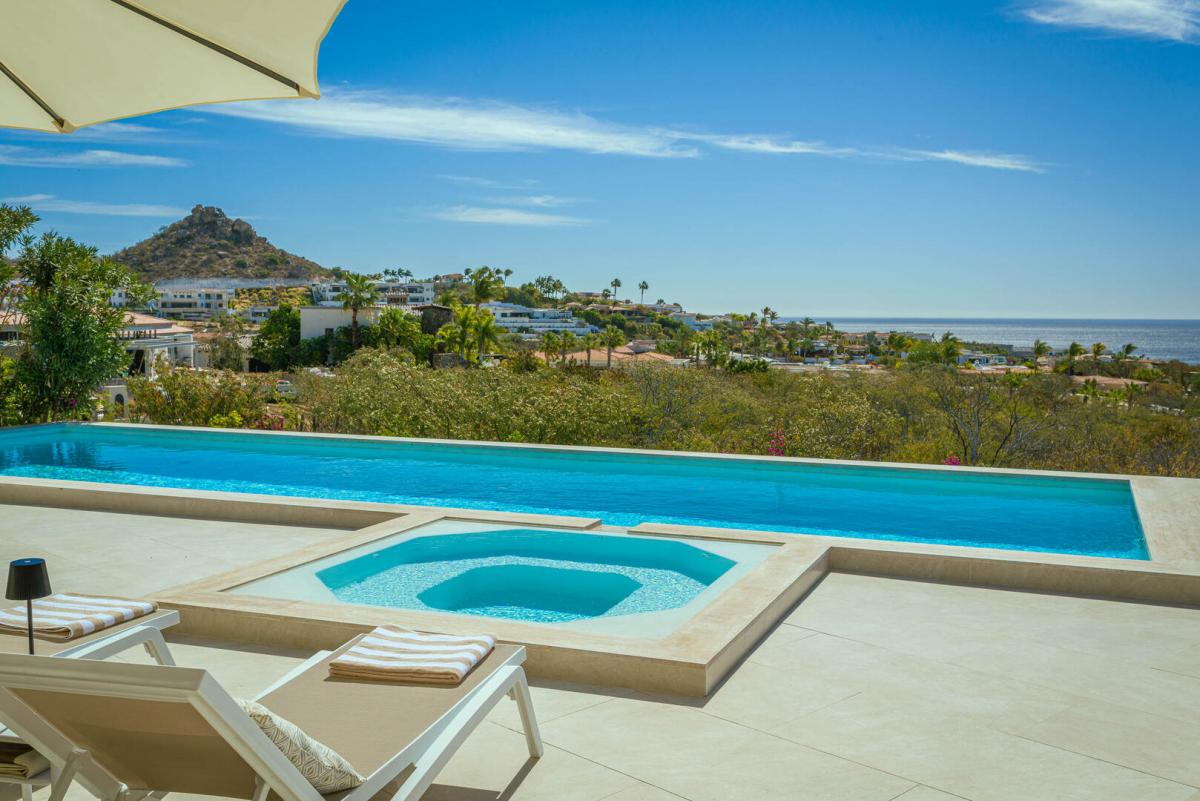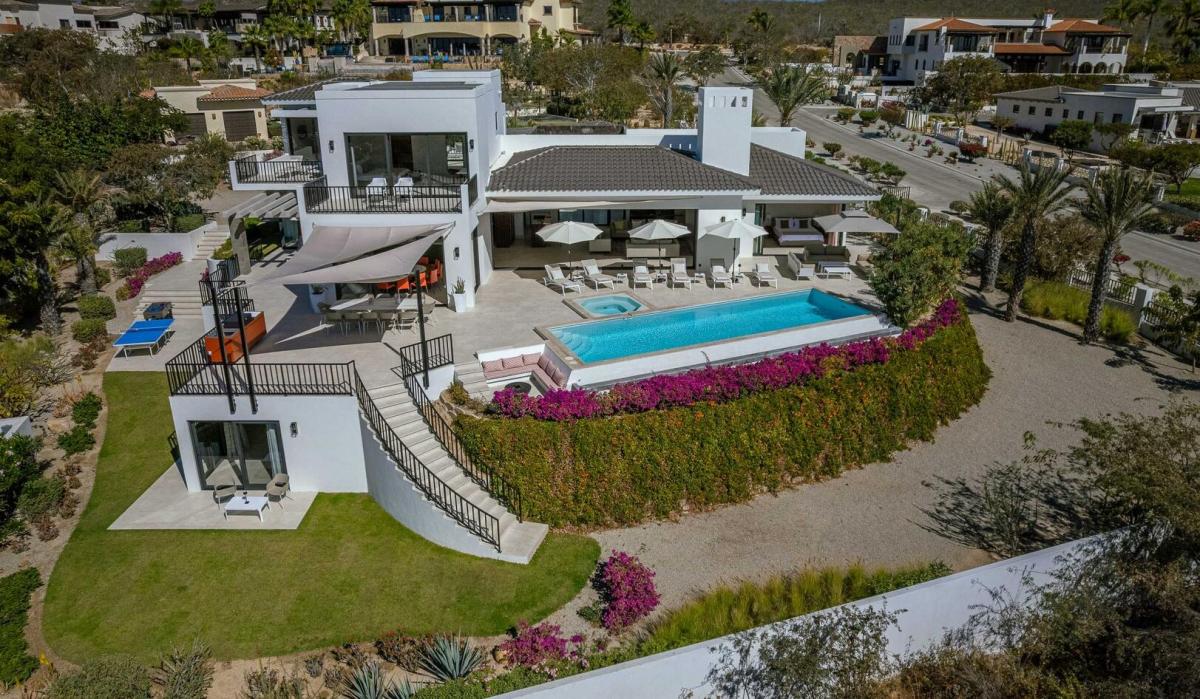 Casa Alba is also an entertainer’s paradise. Guests can enjoy a gourmet kitchen with top-of-the-line appliances, a circular dining table for 12, and a fully stocked bar with Sonos sound system. Outdoor spaces include a large terrace with a second 12-seater dining area, an outdoor kitchen, a heated pool, jacuzzi, and recreational games. Accessibility is thoughtfully integrated into the design, and a private chef can be arranged for a bespoke dining experience. With access to a beach club, gym, gourmet dining, and nearby championship golf courses, Casa Alba offers a perfect blend of relaxation, sophistication, and fun for your next Cabo vacation