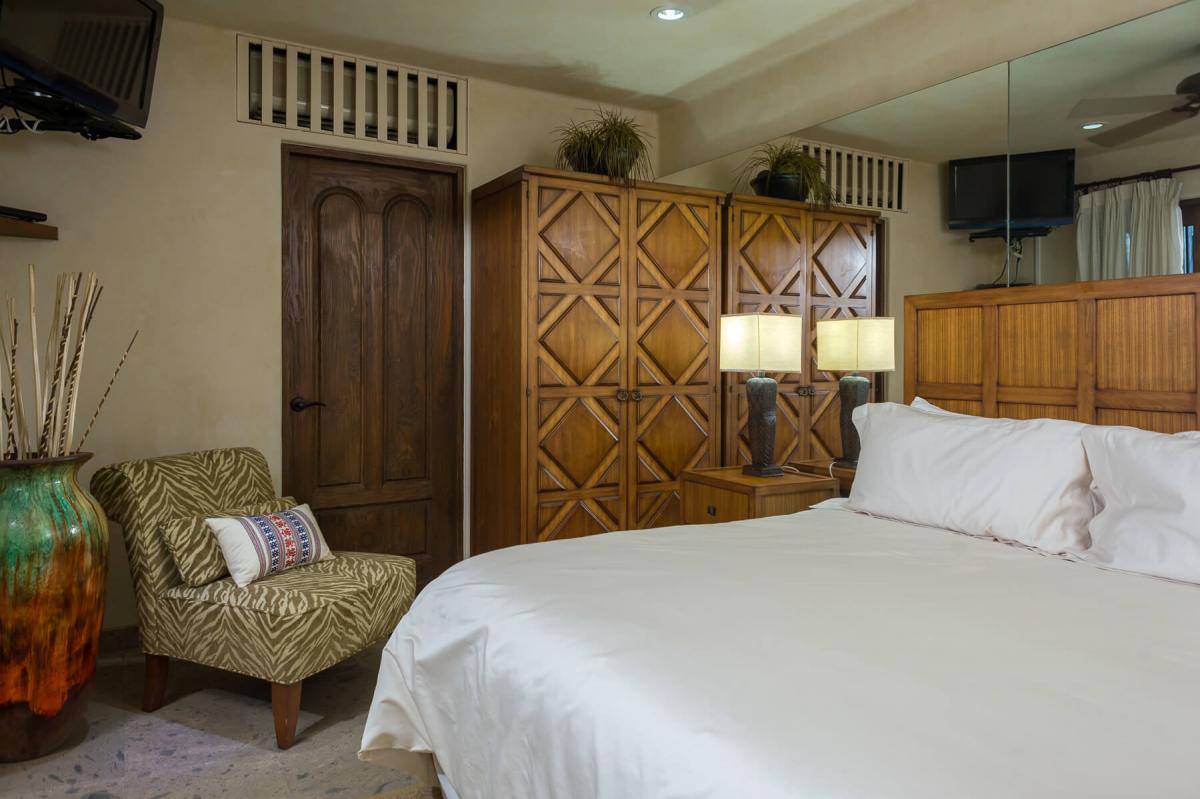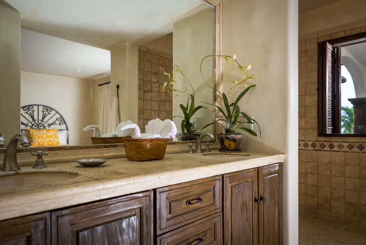 All 5 of Casa Alegria’s bedrooms include soft plush pillows and linens. Each bedroom has an en suite bathroom that includes a built in stereo system and a safe. Two bedrooms have a private terrace and panoramic views of the Sea of Cortez.