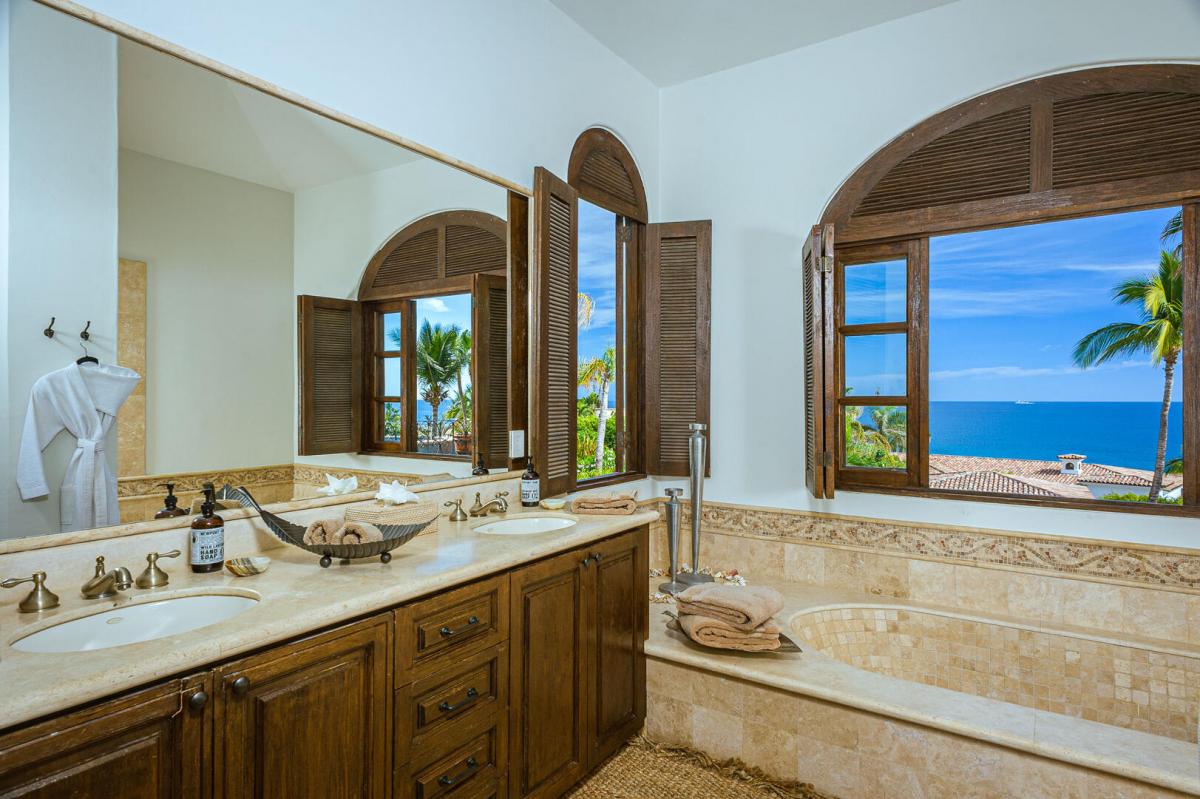 Outside Casa de las Risas, on the lower grass-lined terrace, infinity and plunge pools accompanied by comfortable wood lounge chairs are ready and waiting for you. A dining area, bar, and BBQ are situated in a prime position for the enjoyment of the lovely view. Casa de las Risas is about a 5-minute walk from the beach.