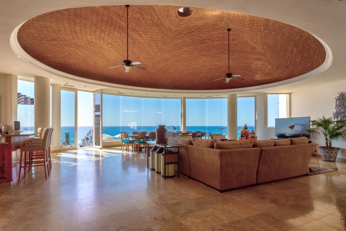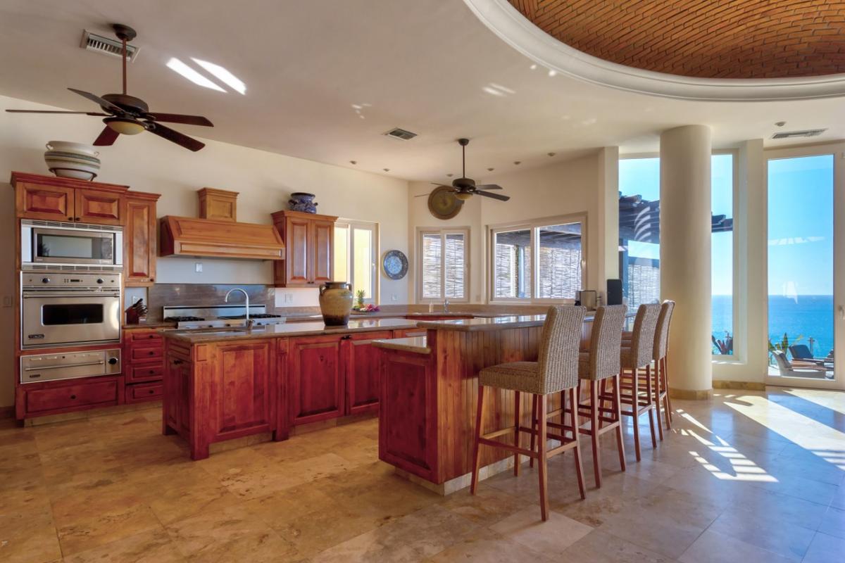 Whether you’re looking for a secluded place to sit and read, or a spacious environment for a full group hangout, Esperanza has the spot for you. The main living area is massive, and the domed brick-ceiling and numerous windowed openings give it an even grander feel. When the doors are open, the space is filled with fresh ocean breeze and natural sunlight and the line between inside and out is delightfully blurry. The lounge area has a plush “L” shaped couch and a couple leather arm chairs facing the dynamic ocean view. The kitchen features high-end stainless steel appliances, granite countertops, and a social breakfast bar that helps unify the entire open concept atmosphere. The formal dining table has space for ten and resides beneath its own brick-ceiling and an elegant chandelier.