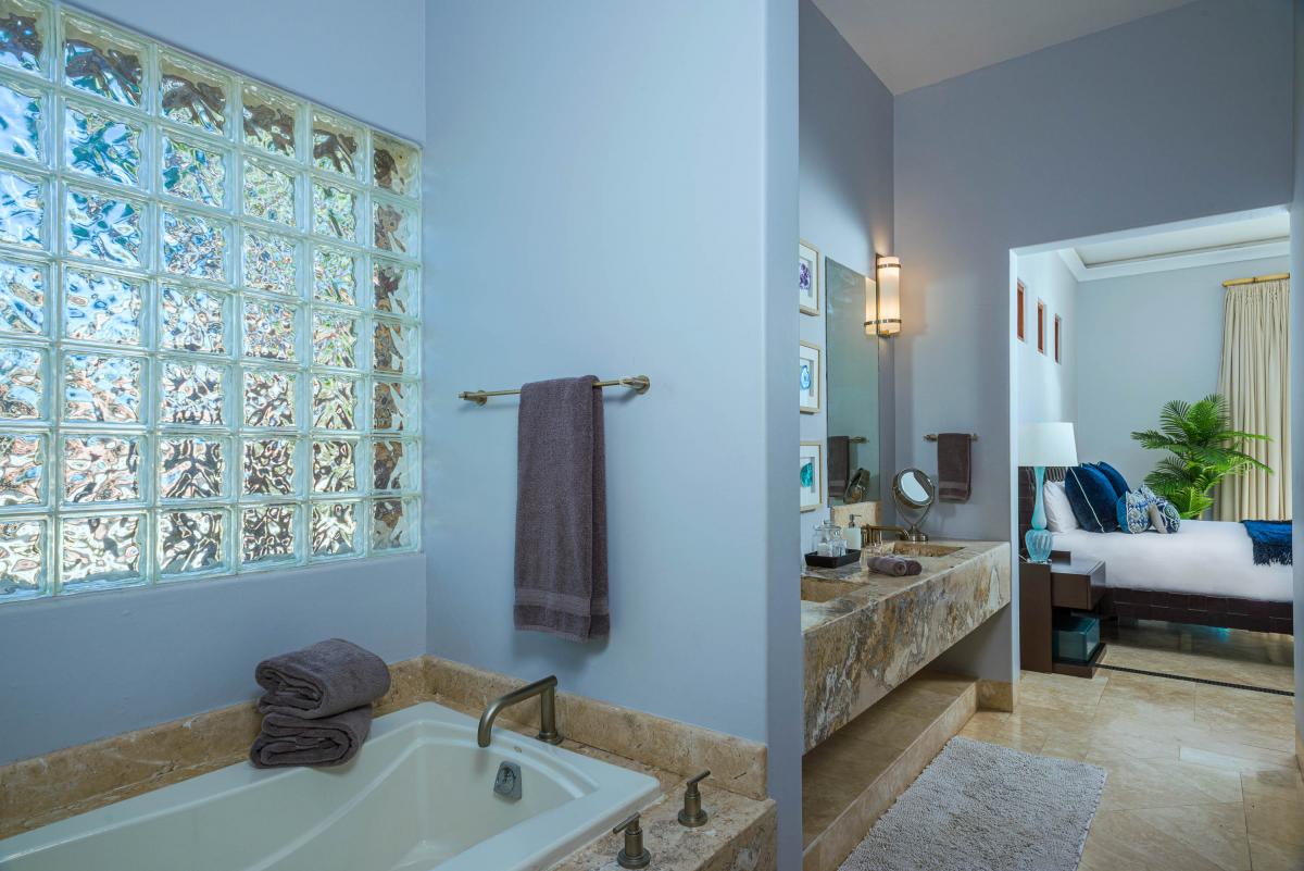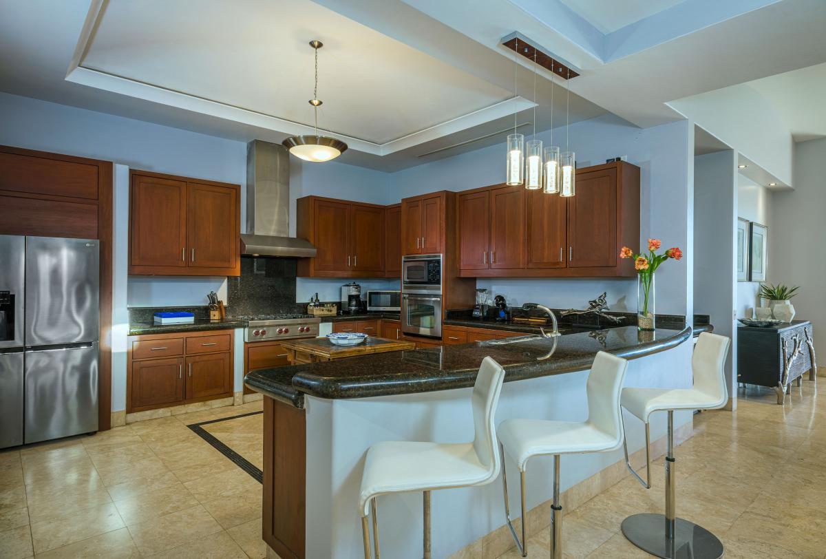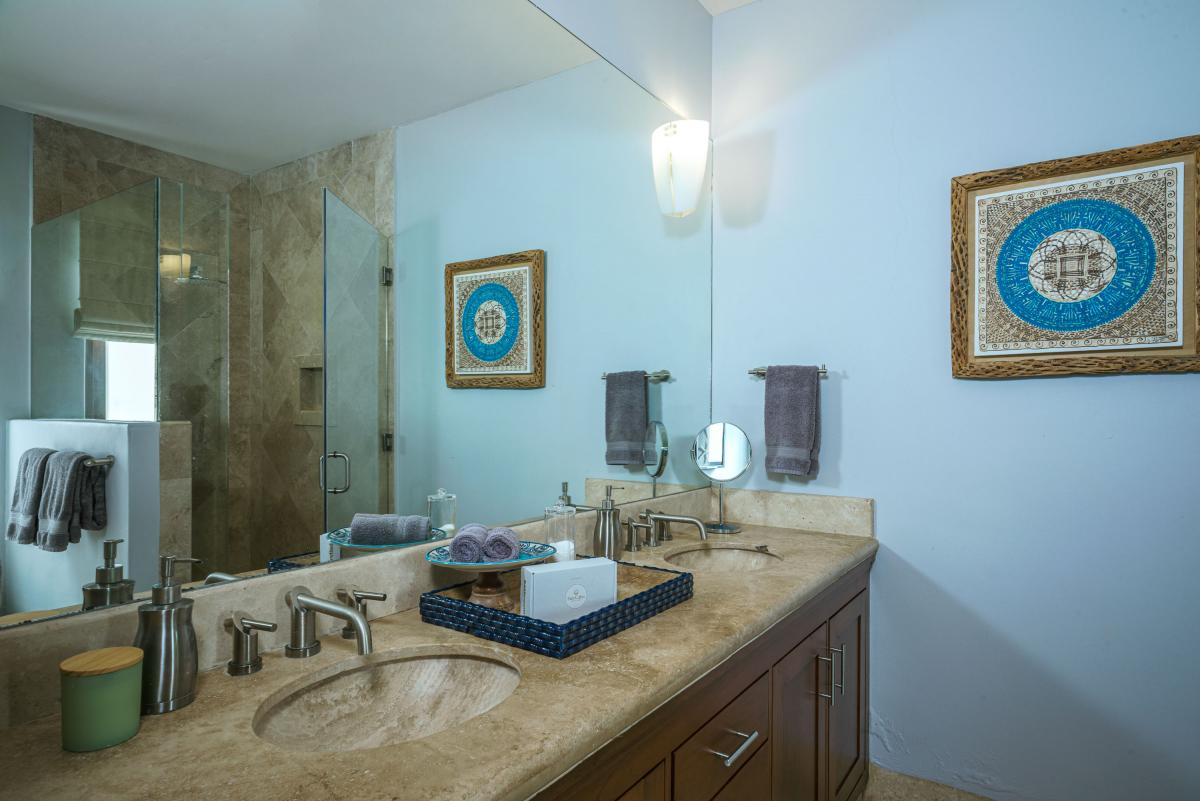 This Los Cabos villa boasts a beautifully designed interior with five spacious bedrooms, each featuring an ensuite bathroom and walk-in shower. Three bedrooms are fitted with plush king-sized beds, one offers two queen beds, and another includes a single queen, making it ideal for accommodating families or groups in style. Modern sophistication blends seamlessly with local charm, creating an elegant and inviting atmosphere. Every detail of the villa has been carefully curated to provide a comfortable and luxurious retreat, ensuring guests feel pampered throughout their stay.