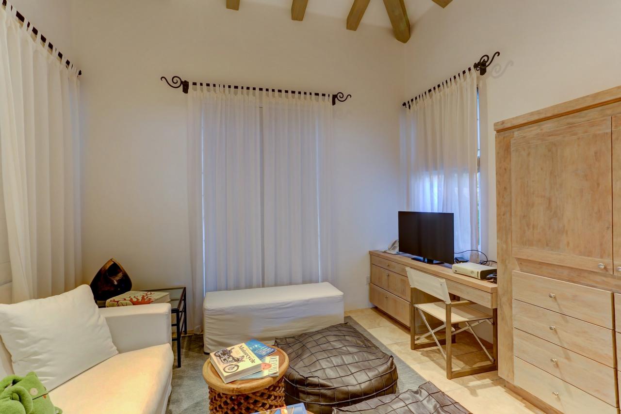 Offering the utmost in opulence, privacy and serenity, Villa 322 can accommodate up to 12 guests, delighting them with two heated pools, a spa and two ocean view master suites with sumptuous baths. The suites, as well as three other well-appointed bedrooms, are equipped with televisions and direct terrace or balcony access. Guests are welcome to use the in-home fitness center or leave the luxury of the villa for the diverse conditioning classes and spa treatments found at the 10,000-square-foot Club Espiritu. On lazy weekends guests, may prefer lounging on the sun-drenched pool terrace or step out onto the gleaming white sands for a romantic sunset stroll.