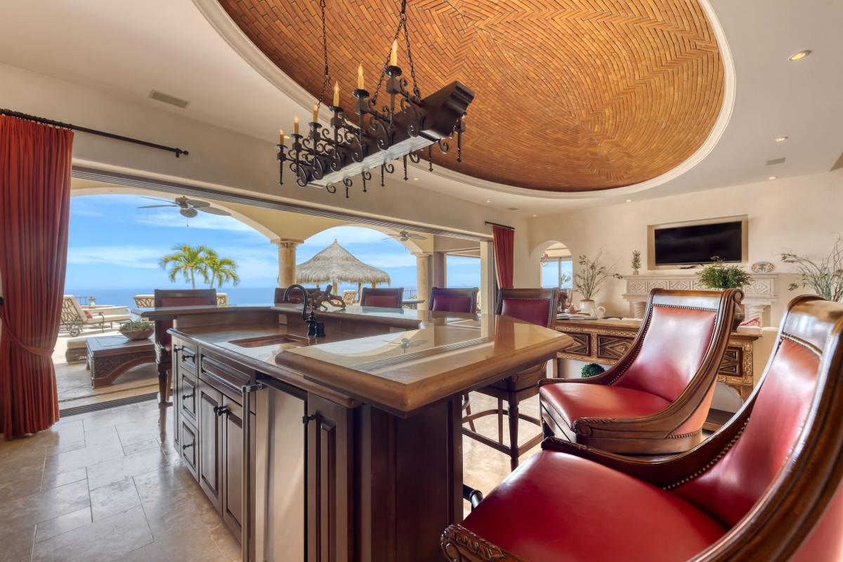Villa Fondren continues to impress with its opulent interiors, including a spacious living room, a gourmet kitchen, and a dining area. This Los Cabos rental seamlessly blends indoor and outdoor living, with massive glass doors leading to the pool deck and private terraces with ocean views. Guests can also enjoy the amenities of the private Club Fundadores, which offers swimming, fitness, dining, and spa services. With nearly daily maid service and proximity to the resort lifestyle of Puerto Los Cabos, this villa promises an unforgettable Los Cabos vacation experience.