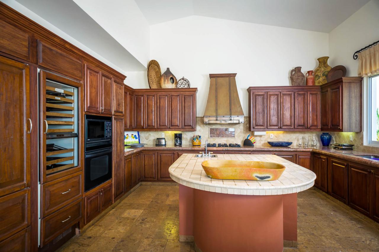 The kitchen, living, and dining areas make up the central living space of Villa Las Brisas. The central living space is open so family and friends can be together. With each bedroom having a private terrace, they all have gorgeous views of the lush greenery and clear waters.