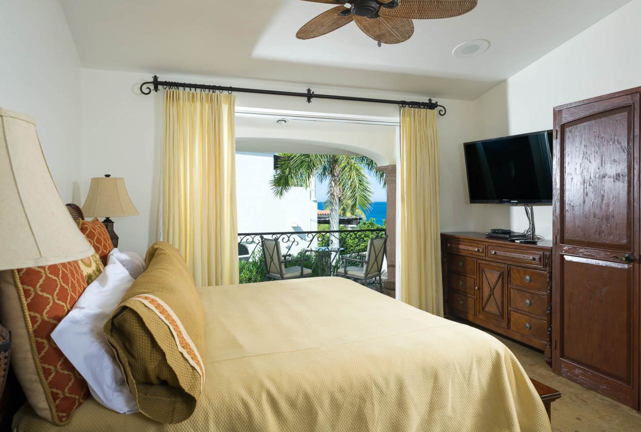 Primary Bedroom: The room has a king-sized bed and an ensuite bathroom. The room has a private terrace that offers an ocean view.