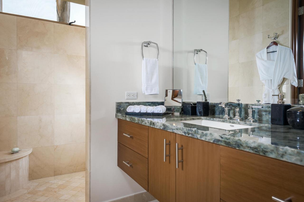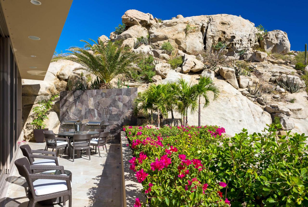 Villa Pacific West features clean lines, stylish interiors, and beautiful natural surroundings. The drive leading up the this luxurious Cabo villa is lined with palm trees. While inside the home a calm and refreshing ambiance is created with neutral tones in the floors and walls, and modern decor infuses the space with style and sophistication.