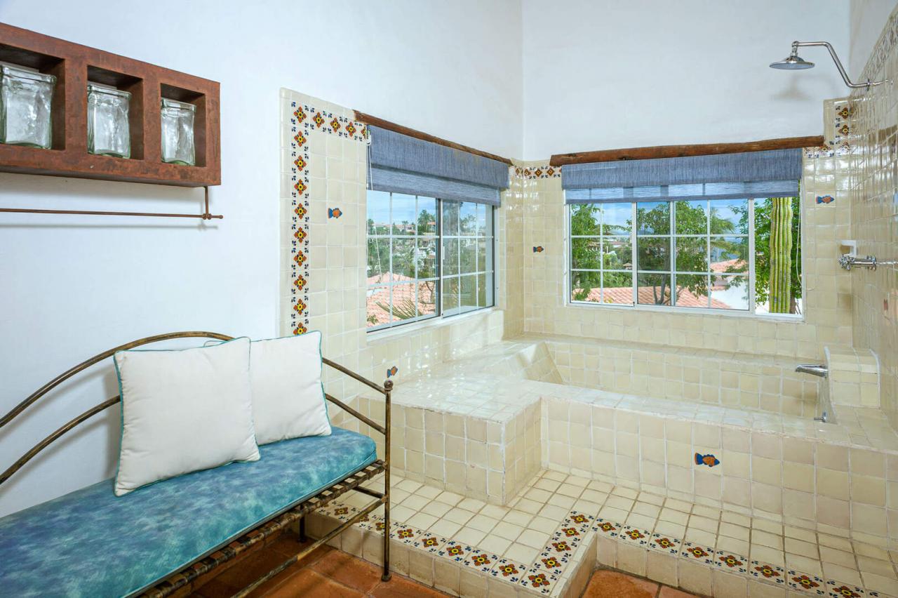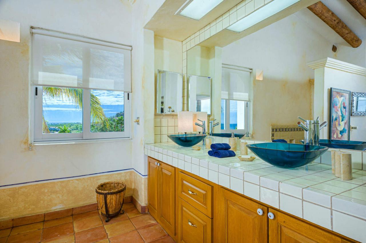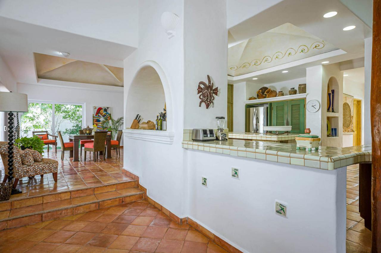 Inside Villa Stela Maris, the tall wood-beamed ceilings, tile floors, folk art and comfortable furnishings invite you to relax with family or friends. Outside, the pool terrace offers a shaded dining area, jacuzzi, grill, and beautiful views of ocean blues and rustling palm trees. Serenity is waiting for you at Villa Stela Maris.