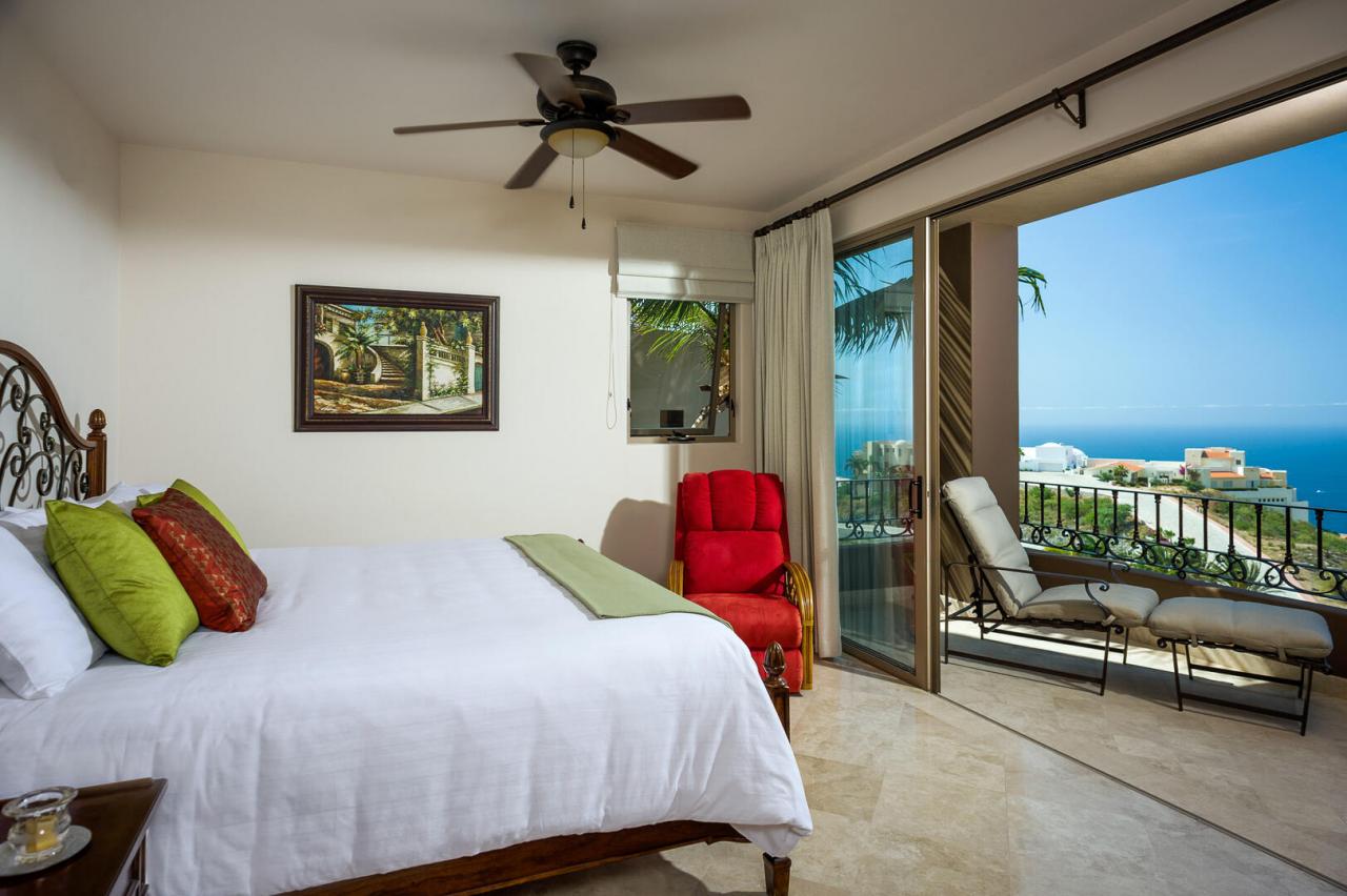 Upscale rich leather and wood furnishings adorn this Los Cabos villa, from the private bedrooms to the grand living areas and the gourmet kitchen. For added convenience, the home also features a smaller kitchenette and extra living space, enhanced by the stunning views from the numerous windows and glass doors throughout. The villa includes a formal dining area with seating for up to 10 guests, overlooking the expansive outdoor space.