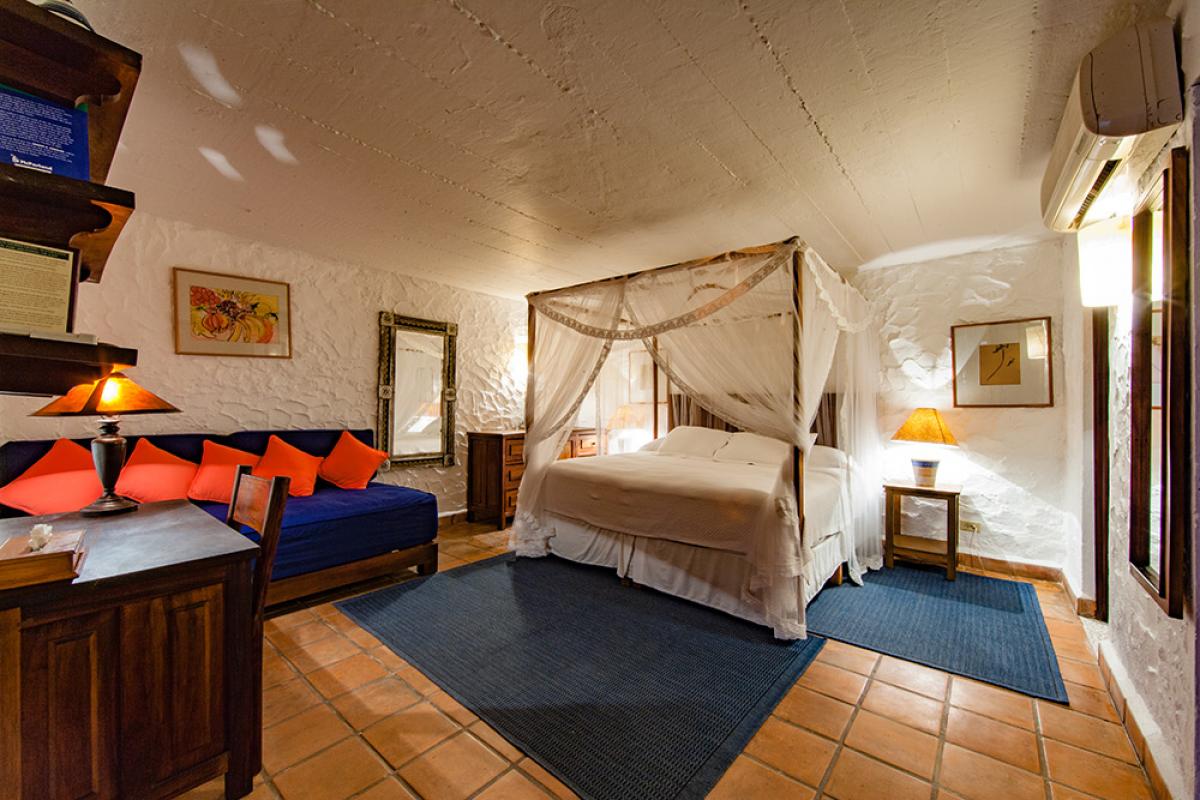 Included in the nightly rental of Casa Cosmos is your own private staff of four; cook, daily maid service, houseman, and groundskeeper. The villa has a spectacular 50 ft. long (lap size) natural rock grotto style swimming pool with a refreshing cool water jacuzzi and rock slide. Bottled water is provided in all bathrooms, and purified water is used for all food preparation. The living room features artisan crafted furniture, satellite television with VCR/DVD, and a stereo system with hidden area speakers and overhead fans throughout. The bedrooms are all air conditioned.