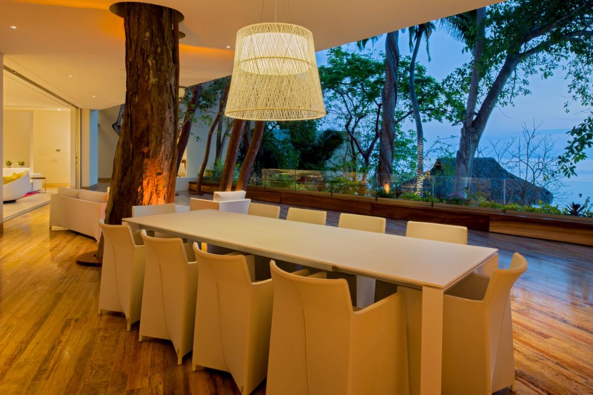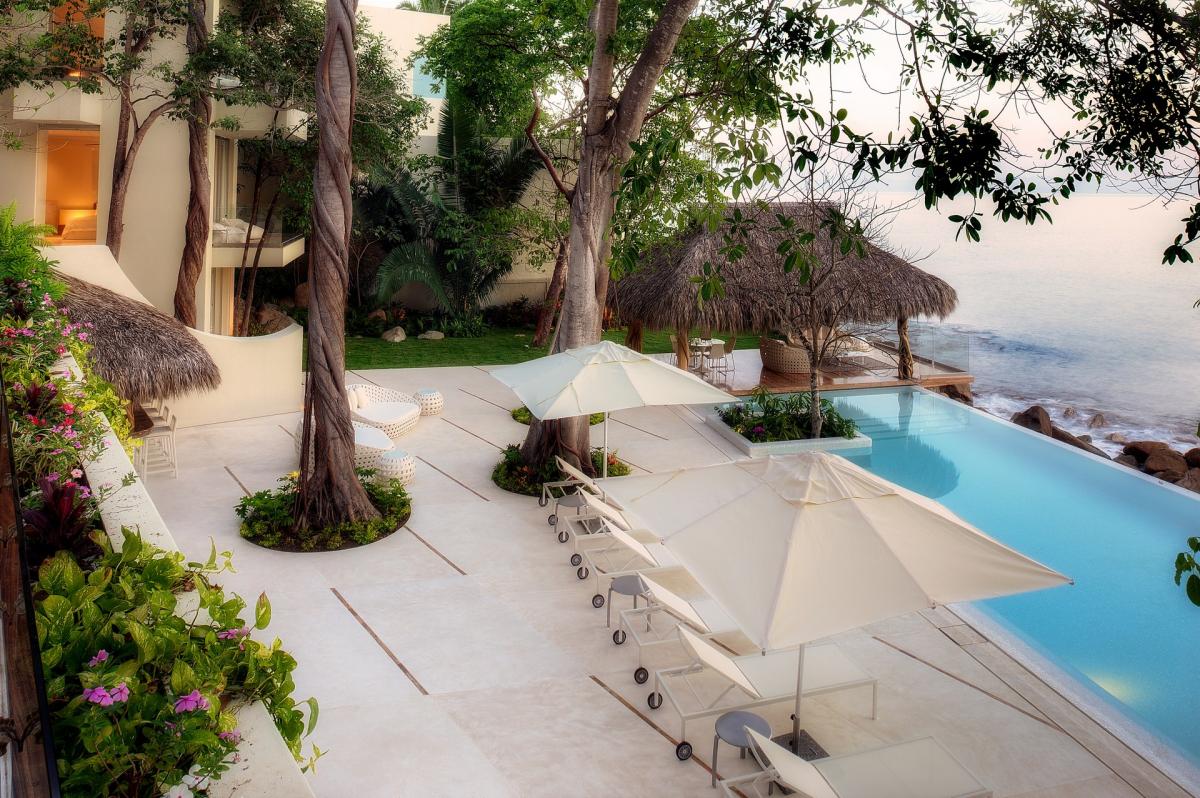 Casa Papelillos is a 13,000-square-foot oceanfront home that has five bedrooms, sleek contemporary style and indoor living spaces that seamlessly transition to outdoor terraces. It is located on the El Paredon Resort on Banderas Bay, meaning guests have access to the resort’s amenities. They also share perks like the daily maid and cook service.