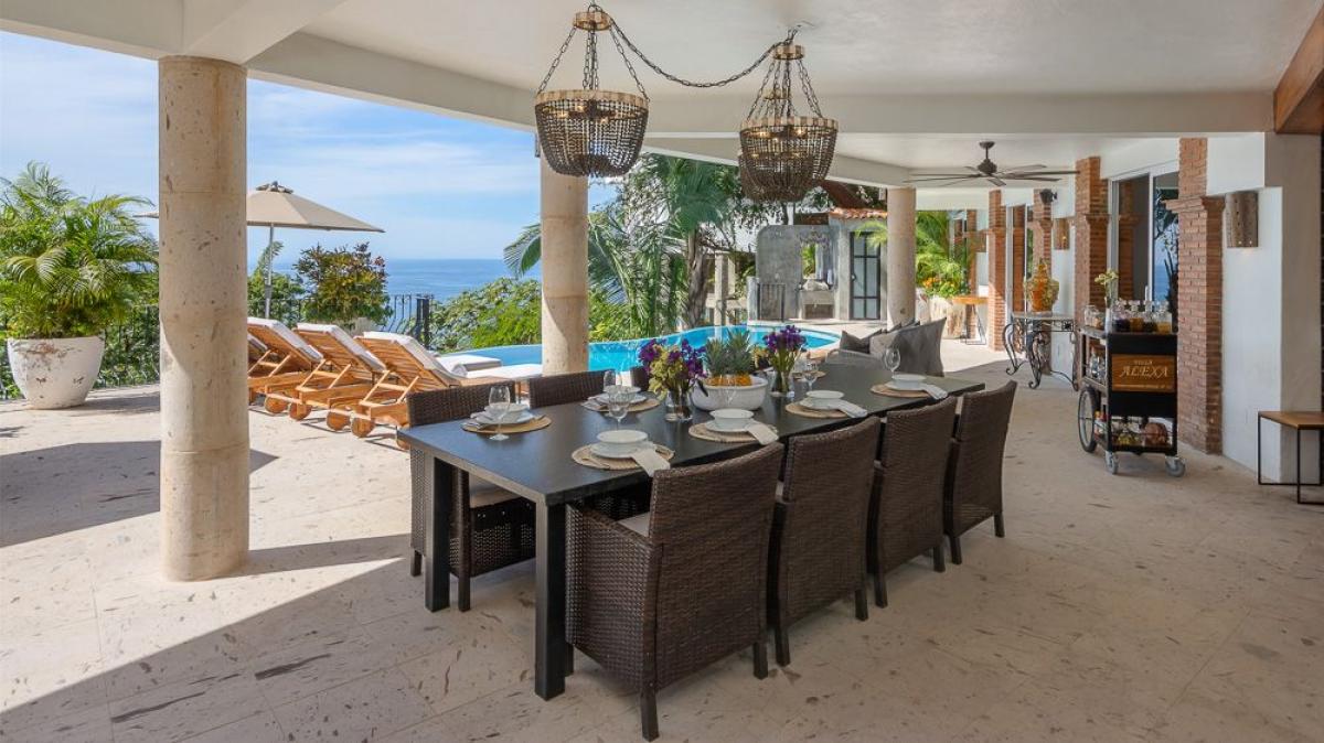 Recently renovated from top to bottom, Villa Alexa is classic Puerto Vallarta 9 bedroom villa located in upper Conchas Chinas, just 5 minutes from downtown. Each of the 9 bedrooms is en-suite with excellent ocean views. Staff will include daily housekeeping, meal service twice per day (cost of food and beverage not included) and a houseman.