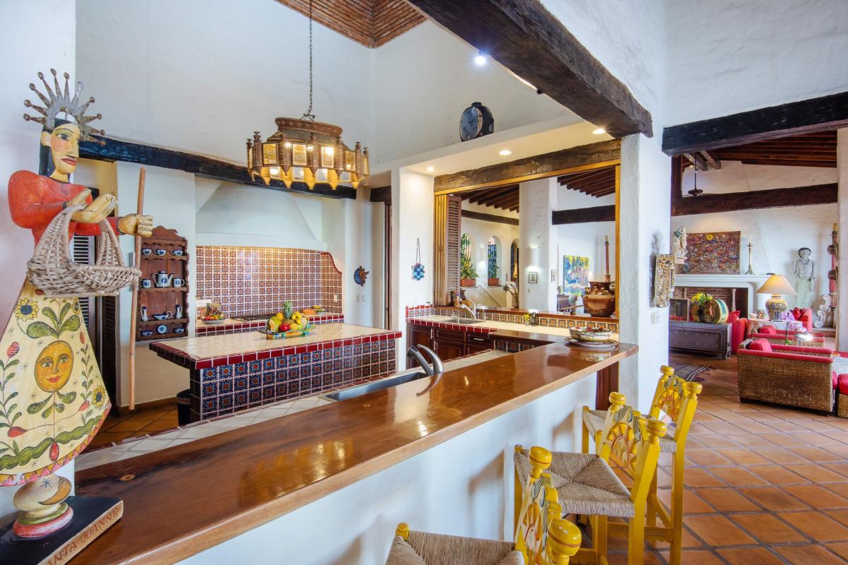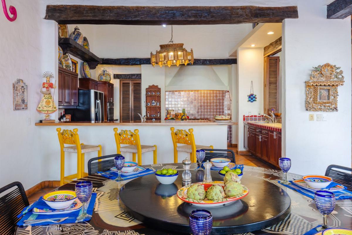 Guests enjoy spectacular views of the sea and the Bay of Banderas from both indoors and out. The lower level terrace has a heated pool, and everything needed for a fabulous alfresco experience with a poolside bar, barbeque, as well as plenty of outdoor lounging and dining areas in both the sun and the shade. Private stairs lead down to a nearby sandy beach. The main open concept living and dining area has an entertainment system with satellite TV and iPod dock. The villa reservation includes full staff: a Villa Manager, Cook, housekeeper and 24/7 security