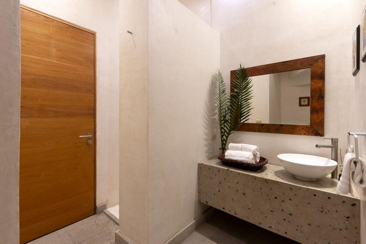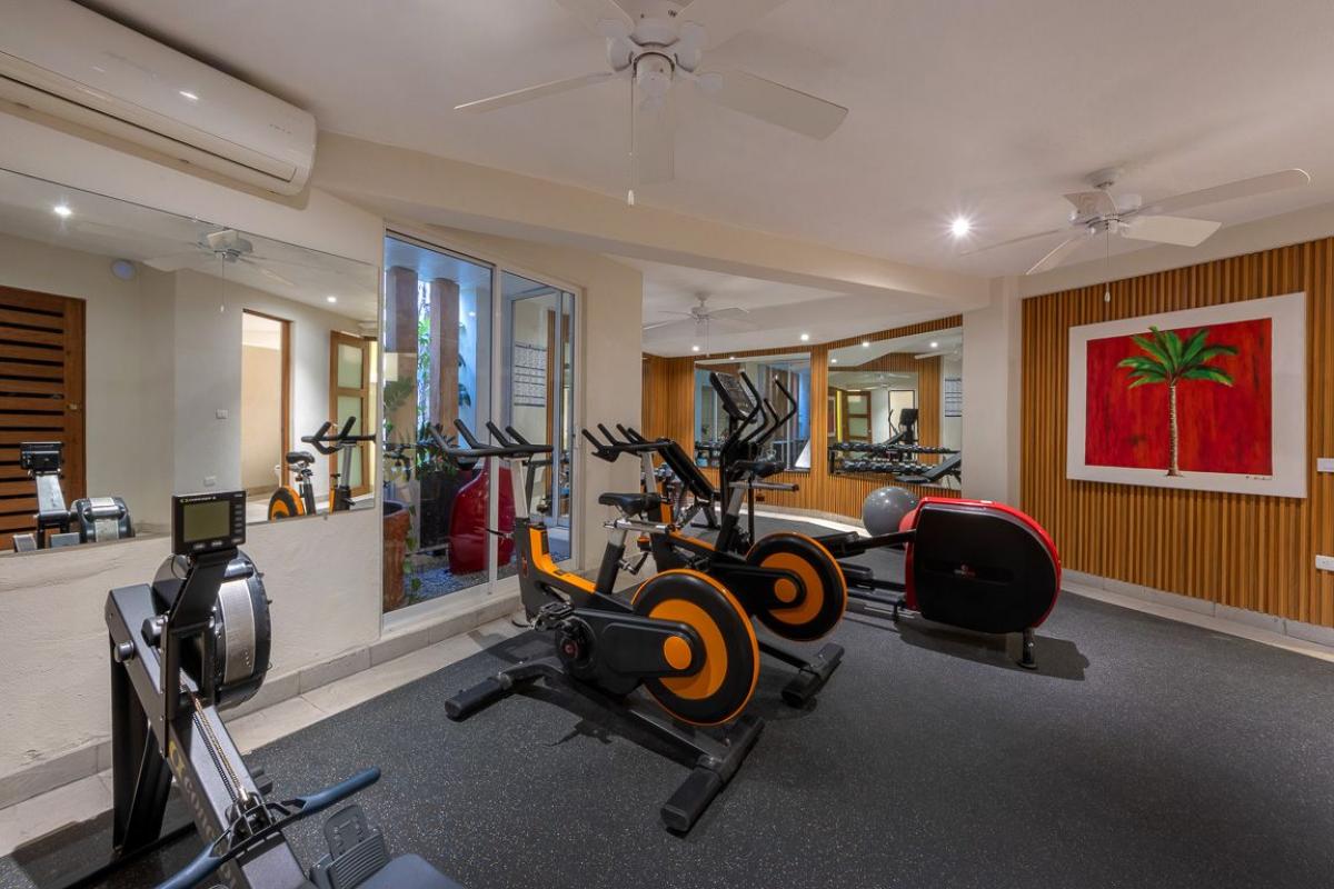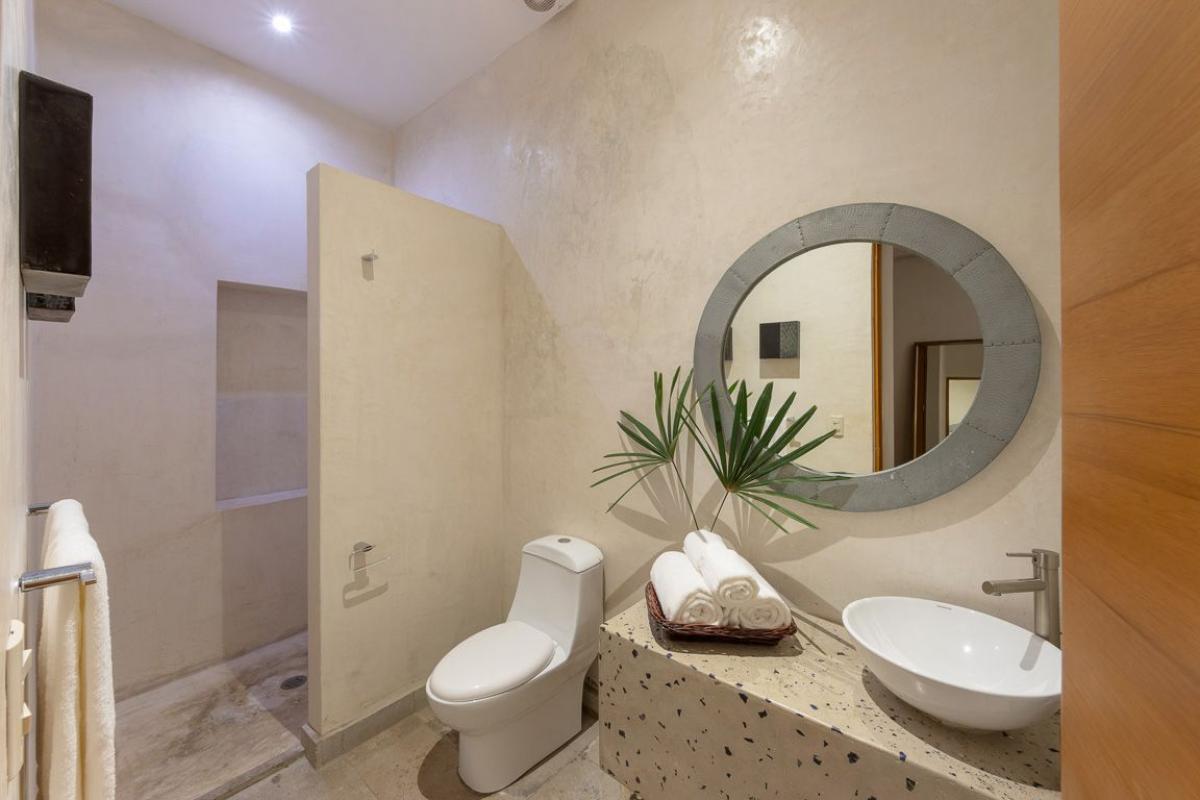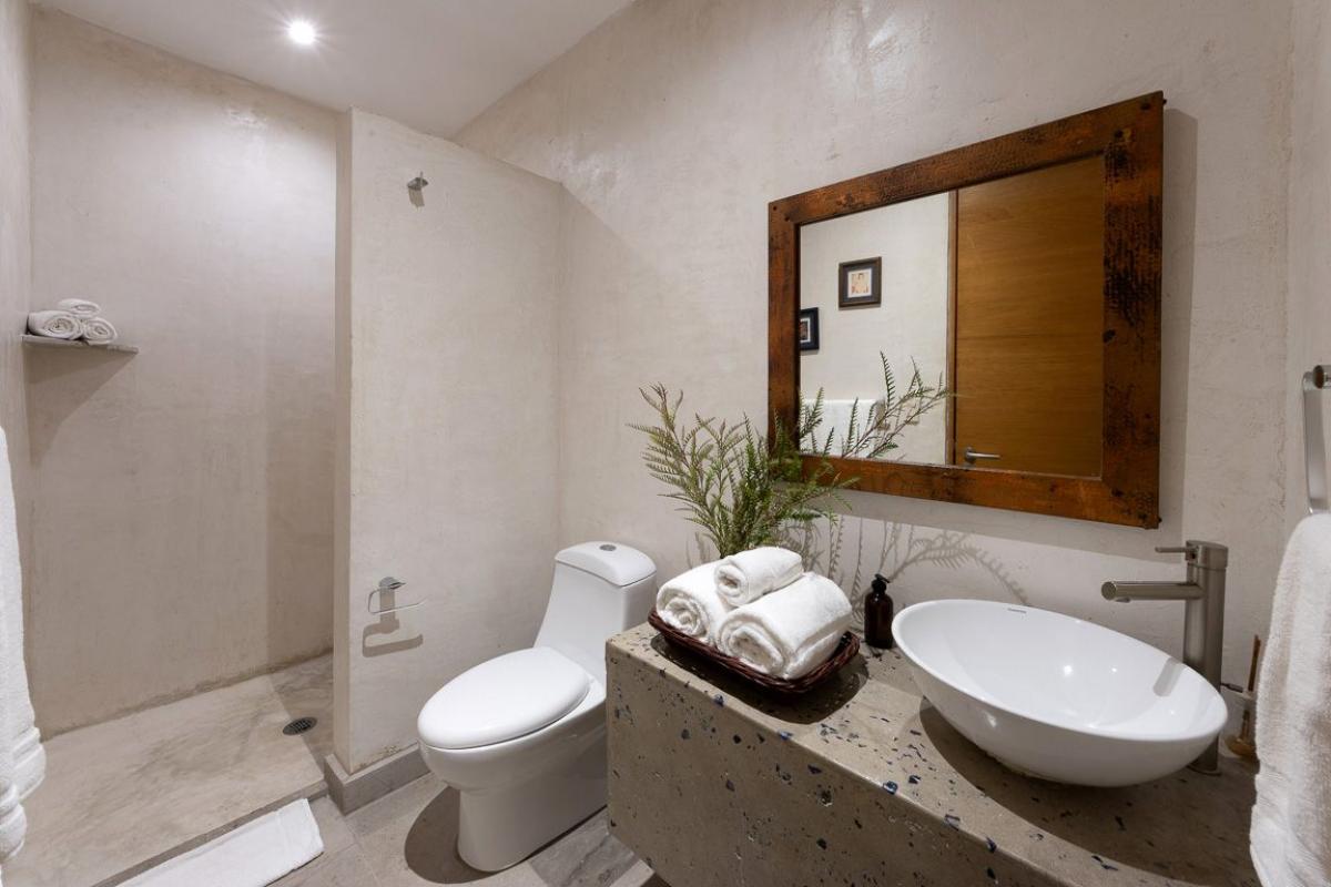- Bedroom 1: Primary with king bed, en suite bathroom, TV, AC, fan, ocean view, private terrace